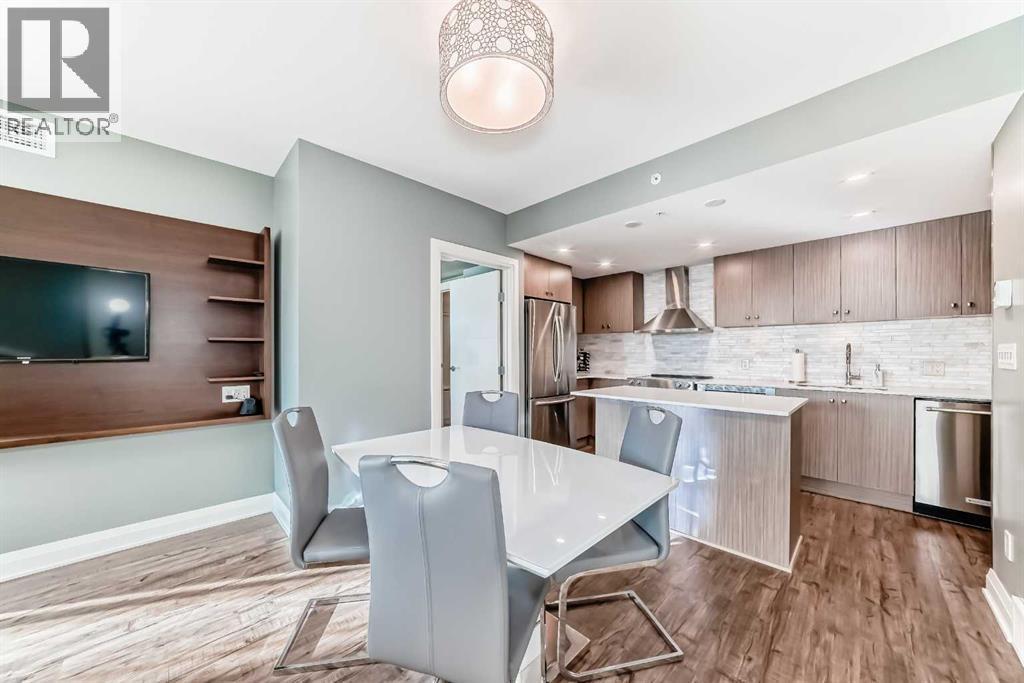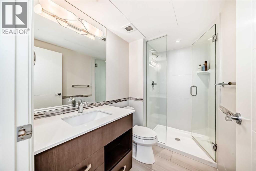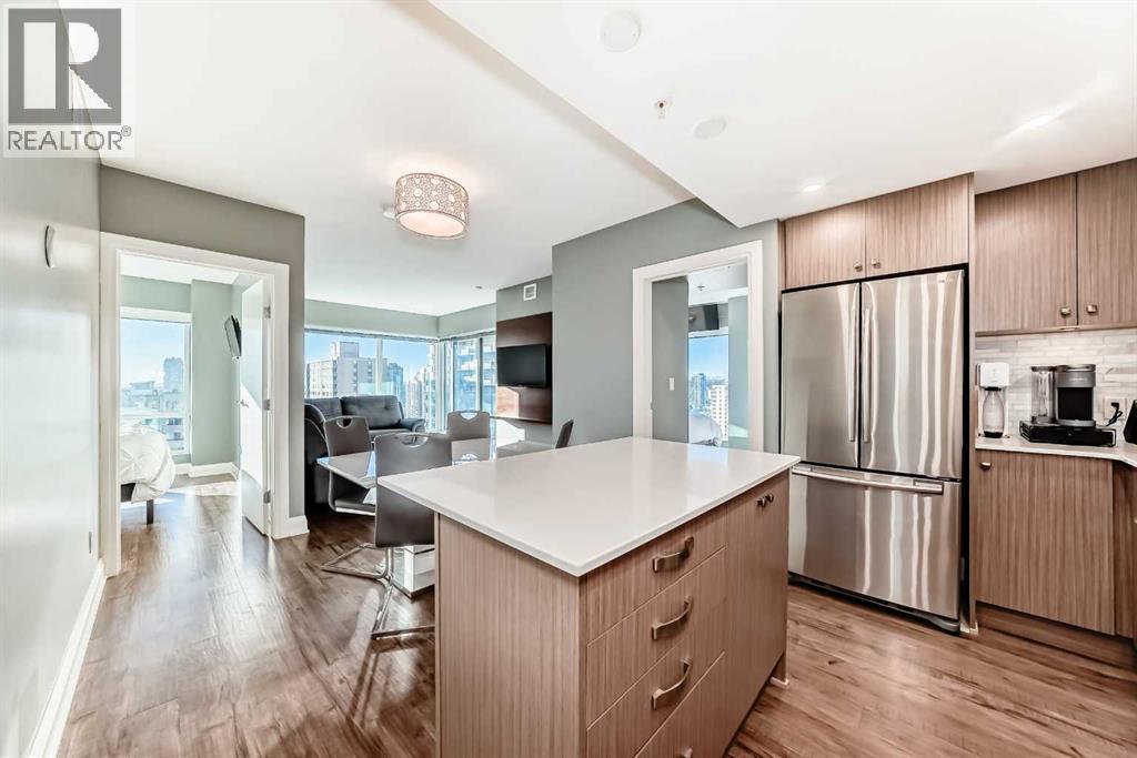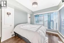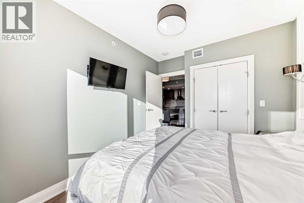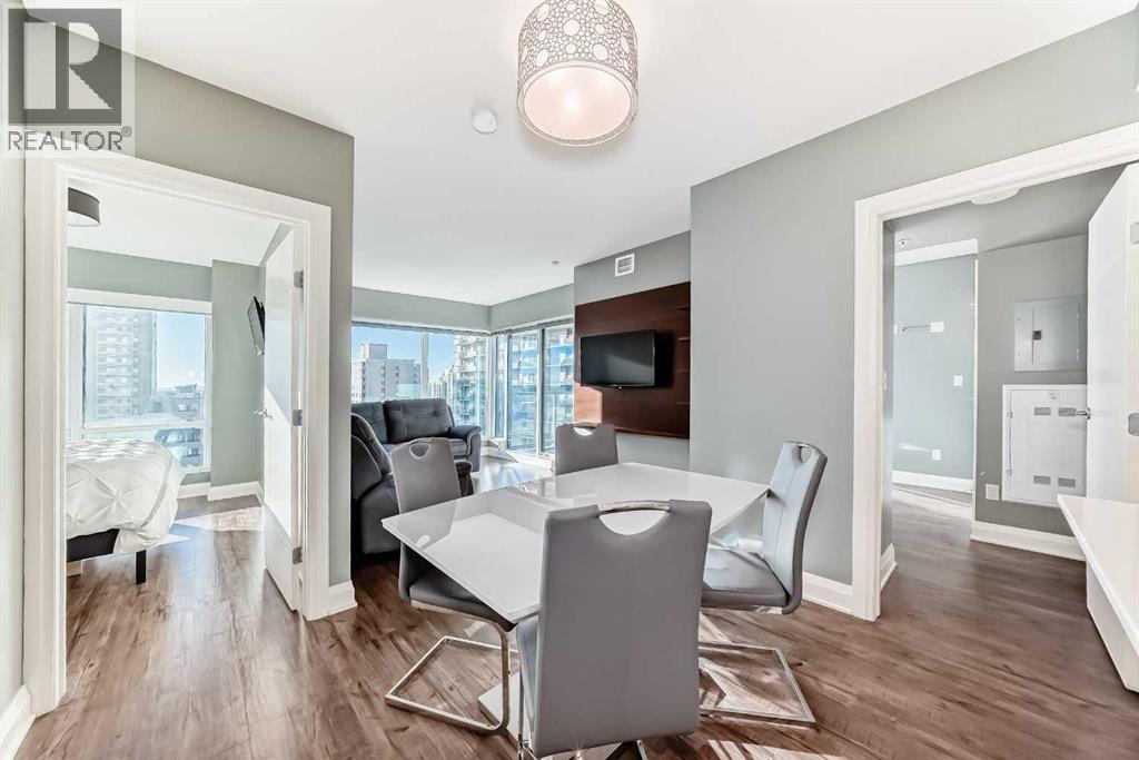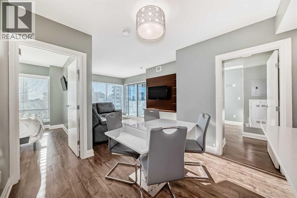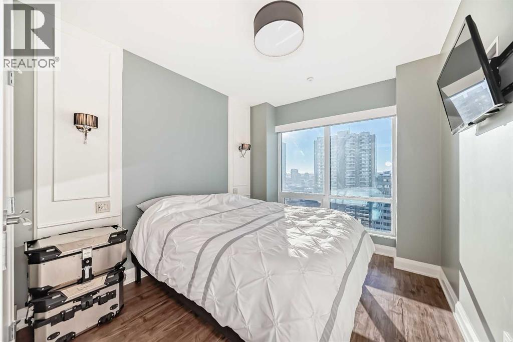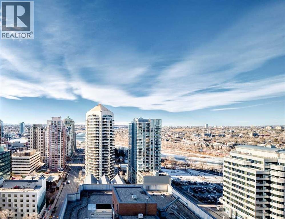 Experience the pinnacle of downtown luxury in this 2 bedroom, 2 bathroom, titled parking, SW-facing corner unit at VOGUE. Sold fully furnished and turnkey, this "Orion" floorplan is situated on one of the exclusive "Bedouin Suites" floors, featuring elite upgrades not found in the rest of the building.Floor-to-ceiling windows frame breathtaking mountain and river views, flooding the space with natural light. The interior boasts premium walnut built-ins, custom bedroom paneling, and a chef-inspired kitchen with an upgraded central island and quartz finishes. Both bedrooms act as private retreats, flanking the living area for maximum privacy. Perfect for investors, professionals and empty nesters. Beyond the unit, enjoy executive amenities including a 36th-floor Sky Gym and 24/7 concierge. Prime West End location steps to the river pathway, C-Train, downtown, and trendy Kensington. Condo fees are $610.35/month, including all utilities except electricity. (id:6769)