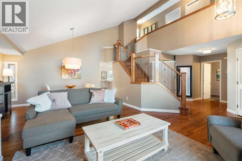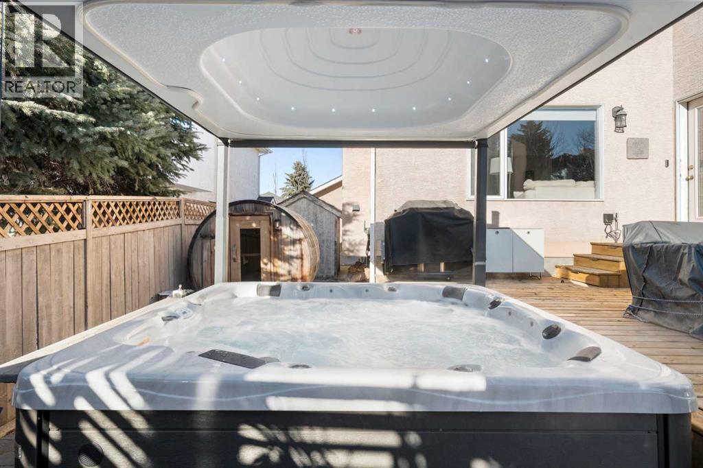 This stunning 2-storey family home in desirable McKenzie Lake offers over 3,100 sq. ft. of developed living space with 4 bedrooms, 3½ bathrooms, extensive upgrades, and includes full lake privileges. Located on a quiet street with no through traffic, it’s just steps to Fish Creek Park, walking paths, and nearby schools, with quick access to Deerfoot and Stoney Trails.The main level features soaring vaulted ceilings in the living and dining areas, oak hardwood floors, and a warm, timeless colour palette. The family room is anchored by a gas-ignited wood-burning fireplace, while the gourmet kitchen showcases ceiling-height white maple cabinetry with soft-close features, a walk-in pantry, premium stainless-steel appliances, sleek granite counters, a contrasting island with breakfast bar and built-in wine rack. A bright dining nook overlooks the private, south-facing backyard and opens to the expansive, newer deck. A den/office, laundry and mudroom, powder room, and custom front door with 3-point locking system complete the main level.Upstairs, the spacious primary retreat (approx. 20’ x 25’) includes a lounge area, walk-in closet, and ensuite with jetted soaker tub, makeup vanity, and shower. Two additional bedrooms with ample-sized closets (one with built-in desk) and a full bathroom complete the upper level.The fully finished lower level includes high ceilings, a large rec room with gas fireplace and projector screen, a fourth bedroom, pristine 3-piece bathroom, and generous storage area currently used as a home gym with potential for an additional bedroom.The south-facing backyard is a true retreat with newer deck, gazebo, interlocking brick patio, hot tub with Covana automated cover, deck umbrella, and outdoor barrel-style sauna. Additional highlights include central A/C, a double attached insulated and drywalled garage and exposed aggregate driveway. Check the virtual tour and book your showing to see it in person. It's a great move-in ready family home! (id:6769)