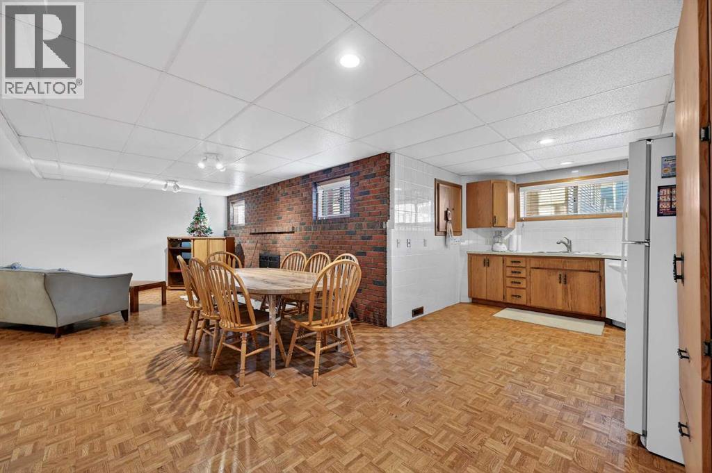 Unequivocally unlike anything in the area. Offering over 2,000 sq ft above grade plus an additional 1,500+ sq ft of developed basement space, this home was clearly designed and built ahead of its time. A south facing backyard features a large oversized double car garage and direct access to the walkout basement. Built to stand the test of time with a clay tile roof and brick exterior. Inside, every room is oversized and thoughtfully designed for large families and gatherings. Meticulously maintained and pristine, this is truly a turn key purchase.The bright main floor showcases gleaming hardwood floors and warm natural woodwork throughout. The spacious kitchen, offering abundant storage and counter space, anchors the entertainment area and flows seamlessly into the dining and living rooms. Unlike most homes of this era, there are three exceptionally large bedrooms, including the primary with ensuite.The walkout basement features a vast family/rec room with a fireplace feature wall, a large secondary kitchen offering endless possibilities, plus two additional bedrooms and a bathroom. The extra deep lot enhances the backyard oasis and allows for the impressive depth of the triple garage. Truly one of a kind for its vintage, this home offers exceptional flexibility and is ideal for large or multigenerational families. (id:6769)