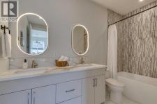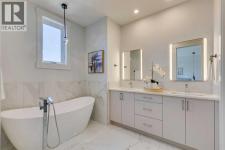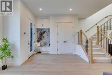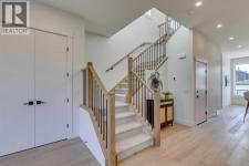 *** SEE THE VIRTUAL TOUR *** Welcome to this stunning brand-new side-by-side duplex located in the desirable community of Banff Trail. With its stylish exterior, the home features a concrete walkway leading to the house, along with concrete stairs at both the front and back, and a spacious concrete patio in the backyard. For safe and easy access to the basement through side door, the side of the house is all concrete without any window well on the way. Step inside to find a welcoming foyer that opens into a large living area, where a two-sided see-through fireplace elegantly separates the living room from the dining area. The modern kitchen is equipped with sleek cabinetry, stainless steel Bosch appliances, and a luxurious granite leather island and countertops. The main floor also includes a beautiful powder room and a convenient mudroom leading to the backyard. Upstairs, you'll discover a generously sized master bedroom complete with a walk-in closet and a stunning modern ensuite bathroom featuring a double vanity, standalone tub, tiled floors, quartz countertops, and a beautifully tiled shower. Additionally, the second floor hosts two other spacious bedrooms and a cozy loft, perfect for an office space or play area for the kids. The laundry room is conveniently located upstairs, alongside the main bathroom, which also boasts a double vanity, tiled floors, and quartz countertops. Hardwood flooring graces the main floor and the hallway of the second floor and the master bedroom. The basement features a separate entrance leading to a legal suite with two bedrooms, a separate furnace, and LVP flooring throughout. This suite includes a full kitchen with quartz countertops and stainless steel appliances, as well as a complete laundry setup, making it an ideal income generator while you enjoy luxurious living upstairs. In all vanities, LED mirrors are installed with 3 color temperatures selection (3000-4000 and 5000), all dimmable to 10% of the normal light and anti fog functionality. Some of the ceiling lights such as master bedroom have 3 color temperature option. Additional highlights include a double detached garage, 10-foot ceilings on the main floor and 9-foot ceilings on the second floor and basement, two furnaces, a 75-gallon hot water tank, rough-ins for AC and central vacuum, soundproof insulation, soundbar and fire rated drywall on the basement ceiling and a soundbar in the party wall. (id:6769)