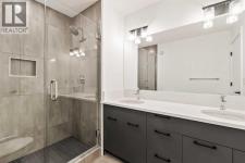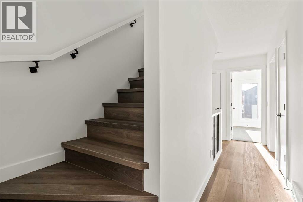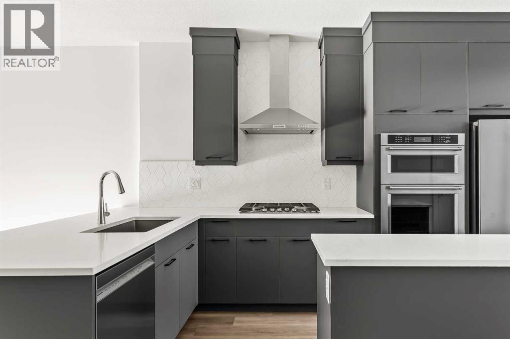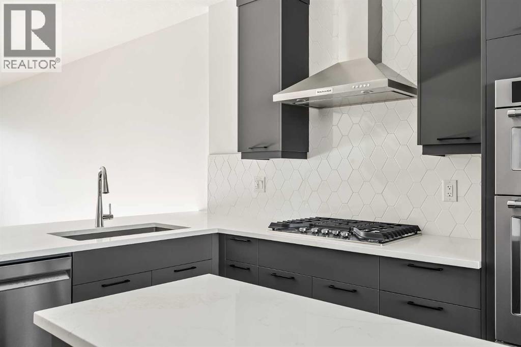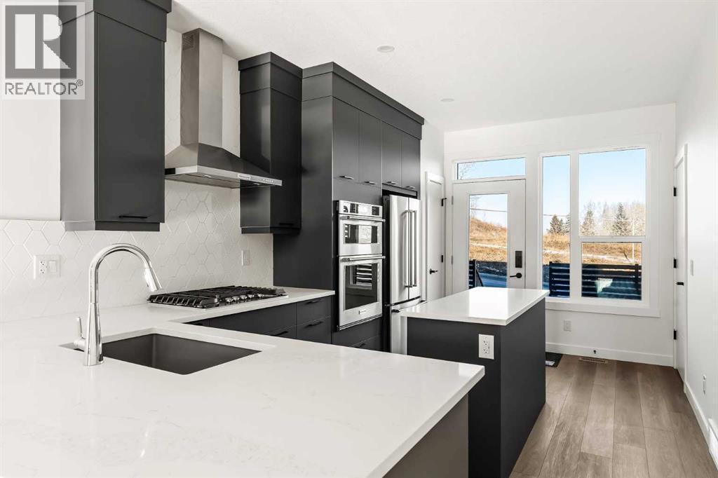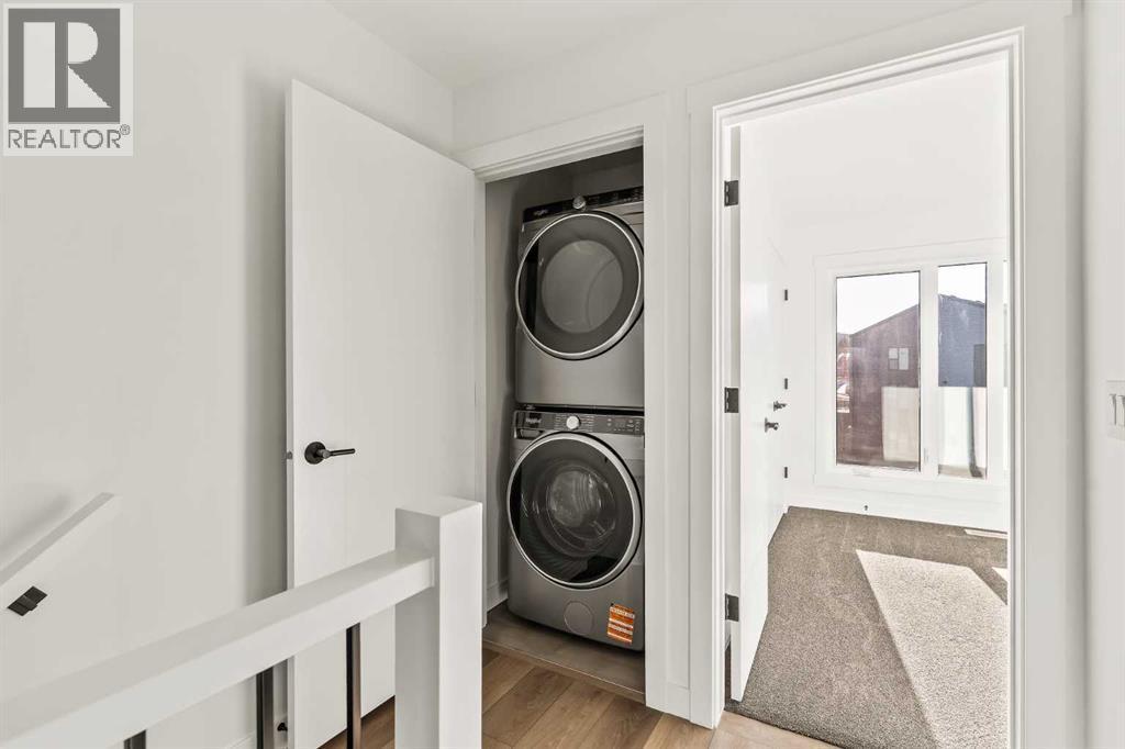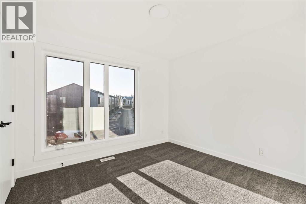 Welcome to the Alameda urban townhome at Crown Park, by Brookfield Residential. Thoughtfully designed, this brand-new residence offers over 1,300 sq. ft. of above-grade living space, plus a versatile lower-level flex room conveniently located off the attached garage. Featuring 2 bedrooms, 2.5 bathrooms, two distinct living areas, and two outdoor living spaces - including an impressive ~200 sq. ft. rooftop patio - this home is ideal for young professionals, downsizers seeking a low-maintenance lifestyle, or investors looking for a premium inner-city opportunity. The welcoming front entrance showcases a spacious patio overlooking green space, complemented by a wall of windows that allow you to enjoy the views both inside and out. The main level boasts a bright, open-concept layout designed with entertaining in mind. The gourmet kitchen is equipped with a gas cooktop, built-in appliances, chimney-style hood fan, and a central island as well as an eating bar that flows seamlessly into the dining and living areas. The central dining space overlooks the living room, while south-facing windows flood the main level with natural light throughout the day. A convenient 2-piece powder room completes this floor. The upper level is intelligently designed for privacy, with bathrooms centrally located and two generously sized bedrooms positioned at opposite ends of the home. The primary suite features double-door entry to a walk-in closet and a luxurious 4-piece ensuite with dual sinks and a tiled walk-in shower with niche. The second bedroom offers a large closet and is perfectly suited as a guest room or home office, with south-facing windows and a full 4-piece bathroom located just steps away. Upper-level laundry adds everyday convenience. Durable vinyl plank flooring continues through the upper-level hallway and stairwell leading to the rooftop patio - a thoughtful upgrade that enhances year-round access to the outdoor space. Designed for entertaining, the rooftop patio offers ample room for lounge and dining areas, is equipped with a gas line, and enjoys views over green space. Completing the home is the lower-level flex room, ideal for a media room, home gym, or office, located adjacent to the private single attached garage, which also includes a dedicated storage room. Timelessly designed with hosting in mind and ample room to grow, this townhome is located just minutes from downtown Calgary and offers multiple outdoor living areas that make it as functional as it is beautiful. With immediate access to nature trails, golf, and major transit routes, this home delivers a lifestyle that extends well beyond its walls. Backed by full builder warranty and Alberta New Home Warranty, you can purchase with complete peace of mind! (id:6769)