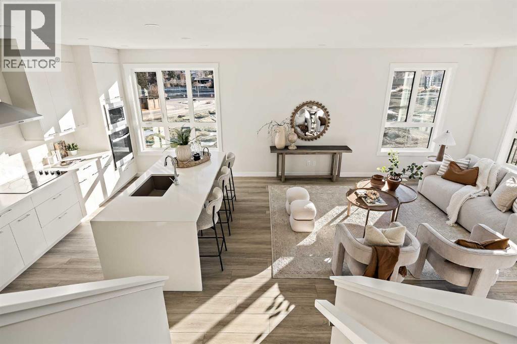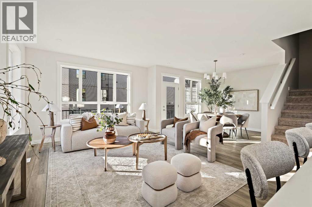 Welcome to the Torrey at Crown Park - an exceptional opportunity offering a brand new move-in ready townhouse that features 3 bedrooms, 2.5 bathrooms and a private double attached garage. Featuring nearly 1,700 ft2 of living space, this end-unit townhome is perfectly situated with optimal southwest exposure providing a bright living space that is flooded with natural light. The bright and open main living area features a stunning kitchen with endless upgrades including built-in appliances, a waterfall quartz island and timeless white cabinetry. The kitchen has been designed for entertaining, located directly off of the expansive main living area. Walls of windows surround the entire main level, providing you with a naturally lit living space all year long. The ~17'x16' great room has ample space for virtually any furniture configuration and opens to the large dining area - creating a seamless flow between spaces. The main level is complete with a 2 pc powder room and direct access to the sprawling 26' balcony that spans the width of the home. The outdoor living space is equipped with a BBQ gas line and hose bib, adding to everyday convenience. The upper level has been thoughtfully designed with the primary suite spanning the width of the home and the secondary rooms and bathroom on the opposite end. The ~12'x12' primary bedroom has ample space for a king bedroom suite and includes a walk-in closet and a private 4 pc ensuite with dual sinks and a walk-in tiled shower. The upper level is finished by two additional bedrooms, a full bathroom and laundry - ensuring everyday convenience. The flexibility of three bedrooms makes this the perfect family home or guest bedroom with a home office space - providing exceptional long term value. The entry level of the home provides access to the private double attached garage, which has additional space for storage, as well as a large storage room - keeping all of your valuables safe and secure all year round. Located in one of Ca lgary's last inner-city developments, just minutes to downtown Calgary with endless transportation routes at your fingertips, this brand new home offers exceptional value and is perfect for first time buyers, investors, or those wanting a lock-and-leave lifestyle with maintenance-free living. Backed by a comprehensive builder warranty + Alberta New Home Warranty, this brand new home allows you to purchase with peace of mind! (id:6769)
