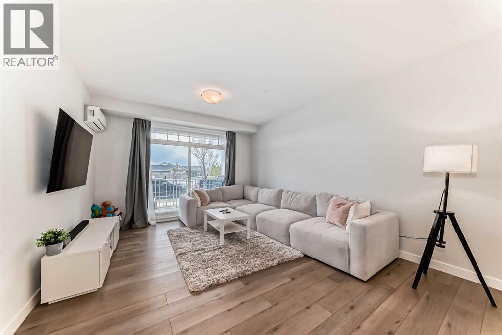 Welcome home to this IMMACULATE ground floor corner unit that features TWO bedrooms, TWO bathrooms, TWO parking stalls, A/C, and just under 1000 sq ft! Wide open floor plan on this beautiful unit and the proximity to ALL of the amenities is hard to beat...close to EVERYTHING! Hospital, the LAKE, VIP Theatre, numerous bars, restaurants, shops, YMCA, parks, playgrounds, transit, school and so much more! As you enter this home you have a small hallway that leads to the living space with the amazing kitchen being the focal point of this one and has quartz countertops, gorgeous white cabinets, built in wall oven and microwave, upgraded lights, large island and gorgeous tiled backsplash. As you move into the living room there is plenty of space for a sectional couch and other furniture and has the sliding doors to access the large balcony/patio! The primary bedroom is drenched in natural sunlight (3 windows!) and has a full spa inspired ensuite bathroom with floor to ceiling tile, quartz countertop and there is also a walk in closet! The 2nd bedroom is a good size as well and has access to the 2nd full bathroom (cheater ensuite) You will also LOVE the A/C, tandem parking stall, extra storage locker, in suite laundry room with a bit of extra storage, central courtyard, ground floor corner unit and the location is gonna be hard to beat! This home still looks BRAND NEW! Please come and have a look if you love beautiful condos in amazing communities! (id:6769)