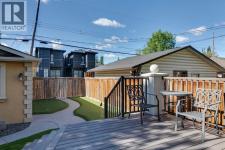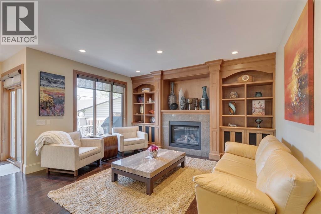 Canopy trees line this family friendly street in coveted West Hillhurst. Boasting over 4,460 sq.ft. of developed living space with fine European finishes, this stunning executive home showcases a gracious 24ft vaulted foyer, and oak hardwood floors. The low maintenance front yard offers underground sprinklers and lush easy to maintain perennials. A front porch is ideal to relax on and welcomes you as you make your way inside to a spacious foyer and large office separate from the main living areas for the utmost privacy. A spacious formal dining room is highlighted by coffered ceilings, while an inviting living room is anchored by custom built-ins and a gorgeous gas fireplace. Culinary enthusiasts will love the gourmet kitchen with solid maple custom cabinets, high-end appliances (Miele and Subzero), and walk-through pantry with access to a large mudroom. The extensive centre island features granite counters and ensures room for entertaining as everyone gathers around. A dramatic curved staircase leads up to a full bathroom and three generous bedrooms, all with walk-in closets. The tranquil primary presents downtown views from the sitting area and features a 2-way fireplace that leads to the lavish 6pc ensuite complete with in-floor heat, jetted soaker tub and separate shower. A convenient upstairs laundry room includes storage, sink, and wraps around to a gorgeous balcony that overlooks the front street. The fully developed lower embraces heated floors, an extensive rec room with custom media built-in and wet bar. Two generous bedrooms, one ideally functioning as a home gym, along with a full bath complete the level. Extend your outdoor living in the south exposed backyard. Dinners on the outside deck extend your space for entertaining or you can relax and unwind after a long day on the lower patio or practice your putts on the mini green. Located within steps to the Karl Baker off-leash dog park, Helicopter Park, the Bow River Pathways system, the Foothills Hospita l, and mere minutes to great restaurants, trendy Kensington, and the Downtown Core. This real estate gem is a masterpiece of quality workmanship and ready for you to call "home." (id:6769)