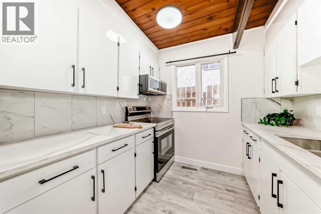 I am excited to share a new listing for a beautifully renovated half-duplex with LEGAL basement suite located in the heart of Bowness, situated just two blocks from the new Superstore and Bow River Shopping Center. This property represents an exceptional opportunity for both first-time buyers and investors.The home features a sunny, front-facing orientation and has been extensively updated. The main floor welcomes you with new luxury vinyl plank flooring and a bright living room that opens onto a front-facing balcony. The kitchen has been completely modernized with quartz countertops, soft-close cabinetry, and new appliances. This level also includes two large bedrooms, a renovated bathroom, and a dedicated laundry area. Unique architectural details, such as beautiful vaulted wood ceilings, add character throughout the space.The lower level contains a fully finished two-bedroom LEGAL basement suite, perfect for generating rental income. This suite features an open-concept living area flooded with natural light from large south-facing windows, along with its own dedicated laundry and an updated bathroom.Key mechanical and structural updates include newer windows, a furnace installed within the last few years, and a roof that is approximately 7-8 years old. All interior finishes, including flooring, doors, and baseboards, are brand new.Excellent location within Bowness as you are walking distance to Bowness Mainstreet, all shopping amenities including the new Farmer's Market, public transportation, plus great access to Downtown, West to the Mountains, Bowness and Shouldice Parks, Canada Olympic park and near major road arteries like 16th Ave and Stoney Trail. Please call your favorite agent to schedule a viewing or if you require any additional information regarding this property. (id:6769)