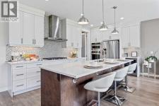 Welcome to 144 Legacy Mount SE an exquisite 2824 sq. ft. detached home in one of Calgary’s most sought-after and family-friendly communities: Legacy. Ideally located across from prestigious Legacy Estate Homes and backing onto a tranquil green space with a playground, this stunning property seamlessly blends elegant design, upscale finishes, and everyday functionality to create the perfect forever home. Step inside and experience a true sense of grandeur. From the moment you enter, you're greeted by 9-foot ceilings, upgraded 8-foot doors, and a show-stopping curved staircase with stylish railings and an open-to-below layout, all illuminated by an abundance of natural light streaming through oversized windows. Throughout the home, hardwood and tile flooring ensure a carpet-free, low-maintenance lifestyle with timeless appeal. At the heart of the home is a two-toned designer kitchen that’s both beautiful and functional. It features ceiling-height white cabinetry, quartz countertops, under-cabinet lighting, and premium appliances including a gas stove, chimney-style hood fan, wine fridge, and a fridge with a water line. Thoughtful touches like hidden sponge storage, a built-in soap dispenser, and strategically placed electrical outlets highlight the attention to detail. The massive central island and walk-in pantry provide exceptional storage and prep space, while the kitchen flows effortlessly into the dining and living areas, offering sweeping views of your private backyard oasis. The cozy living room is anchored by a modern gas fireplace and features built-in speakers, perfect for relaxed nights or entertaining. Step outside to enjoy your 2-tiered cement deck with a BBQ gas line—the ultimate summer setup. Finishing off the main level is a bright home office with double French doors, ideal for remote work, and a spacious mudroom with built-in lockers, leading to the finished double garage, complete with smart storage solutions. Upstairs, a central bonus room smartly separates the luxurious primary retreat from two generously sized bedrooms, offering optimal privacy. The primary suite is a true retreat with a spa-like ensuite featuring dual vanities, ample counter space, medicine cabinet, soaker tub, stand-up shower with built-in bench and dual nooks, a private water closet, and extra linen storage. The expansive walk-in closet comes fully outfitted with custom built-ins and drawers. The two secondary bedrooms each offer walk-in closets with windows and share a beautifully appointed 4-piece bathroom. The upper-level laundry room adds everyday convenience with its utility sink, abundant counter space, lower cabinetry, and ample hanging options. Additional upgrades that are worth noting are central air conditioning, Hunter Douglas Window Coverings Throughout, Built-in Speakers, Ethernet Cat6 Cable in Every Room and Smartphone-Controlled Underground Irrigation System. Don’t miss your opportunity to own this elegant and highly upgraded home! (id:6769)
