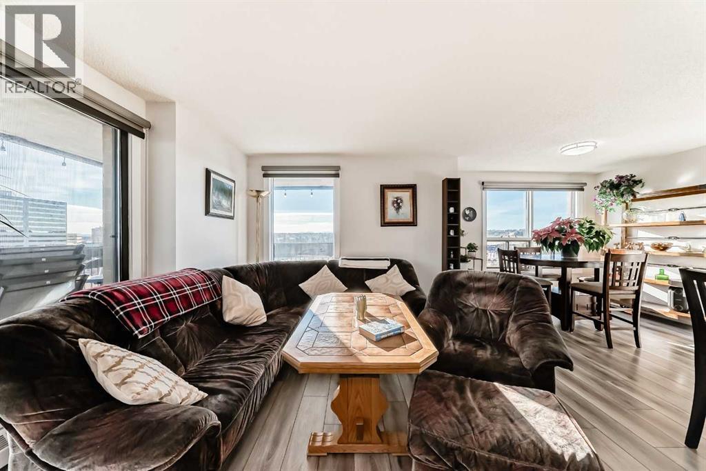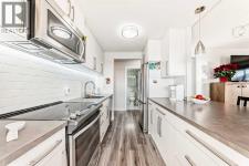 Stunning, fully renovated two-bedroom condo boasting south exposure and breathtaking panoramic views from the wrap around balcony! This bright and beautiful unit features an open-concept layout with an eating counter overlooking the spacious living area, flooded with natural light from expansive windows and a wrap-around balcony. The modern kitchen is equipped with custom cabinetry, premium stainless-steel appliances, ample counter space, an additional pantry, and stylish laminate and tile flooring. Enjoy high-end window treatments throughout, including blackout blinds in both bedrooms. Convenience is at your fingertips with in-suite laundry. Located in a highly sought-after building offering top-tier security, concierge service, and a welcoming community atmosphere. Amenities include a lobby with parcel lockers, social room is fully appointed with a kitchen, washrooms, comfortable seating, TV, vending machines, a book collection, and puzzles—perfect for gatherings and relaxation and there is a well-equipped fitness centre on the 3rd floor. CONDO FEES INCLUDE: all utilities—electricity, heat, water, sewer, parking, and full access to building facilities. This is an 18+ building. Don’t miss the opportunity to call this exceptional condo home! Dogs not allowed but cats are ok. (id:6769)