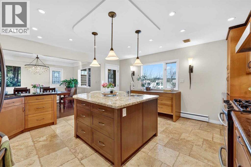Perched proudly atop a quiet hill on one of the most desirable streets in St. Andrews Heights, 1659 St. Andrew’s Place NW presents a truly exceptional real estate offering. This expansive bungalow spans nearly 1800 square feet, includes a fully finished basement and features stunning views of downtown Calgary right from the front window.The kitchen is a true centerpiece, featuring granite countertops, heated floors, and abundant cabinetry and storage, making it as practical as it is inviting. The thoughtfully designed layout includes a total of five bedrooms and three and a half bathrooms, highlighted by a spacious primary retreat with a large ensuite featuring a luxurious soaker tub—the perfect place to unwind at the end of the day.The second large bedroom on the main floor features a convenient half bathroom en-suite, while another full bathroom completes the main floor. A gas fireplace anchors the main living area upstairs, creating a warm and welcoming focal point with large windows throughout the home that flood the interior with natural light and frame the impressive city skyline. A second gas fireplace in the basement living space adds comfort and versatility for relaxed evenings, entertaining, or extended family use. New carpet in the basement gives the space a fresh feel with 3 large bedrooms and another full bathroom complete the home. The home also features a single car heated attached garage. Updated throughout, this home blends classic bungalow charm with modern comfort and functionality. Recent upgrades include a new roof (2024), new hot water tank (2024), and a new back deck (2023)—ideal for outdoor entertaining or quiet relaxation. The main floor features hardwood, tile and cork flooring, while the basement has been refreshed with new carpet, offering comfort and durability across both levels.Whether you choose to enjoy the home as it is, further customize it to your personal taste, or take advantage of the premium elevated lot to build your dre am home, the possibilities here are exceptional. The location is equally compelling—peaceful and private, yet just minutes from downtown, steps from the Foothills Hospital, the University of Calgary, the University District shopping and entertainment district, top schools, parks, and river pathways. Call your favourite Realtor today to book your showing! (id:6769)
