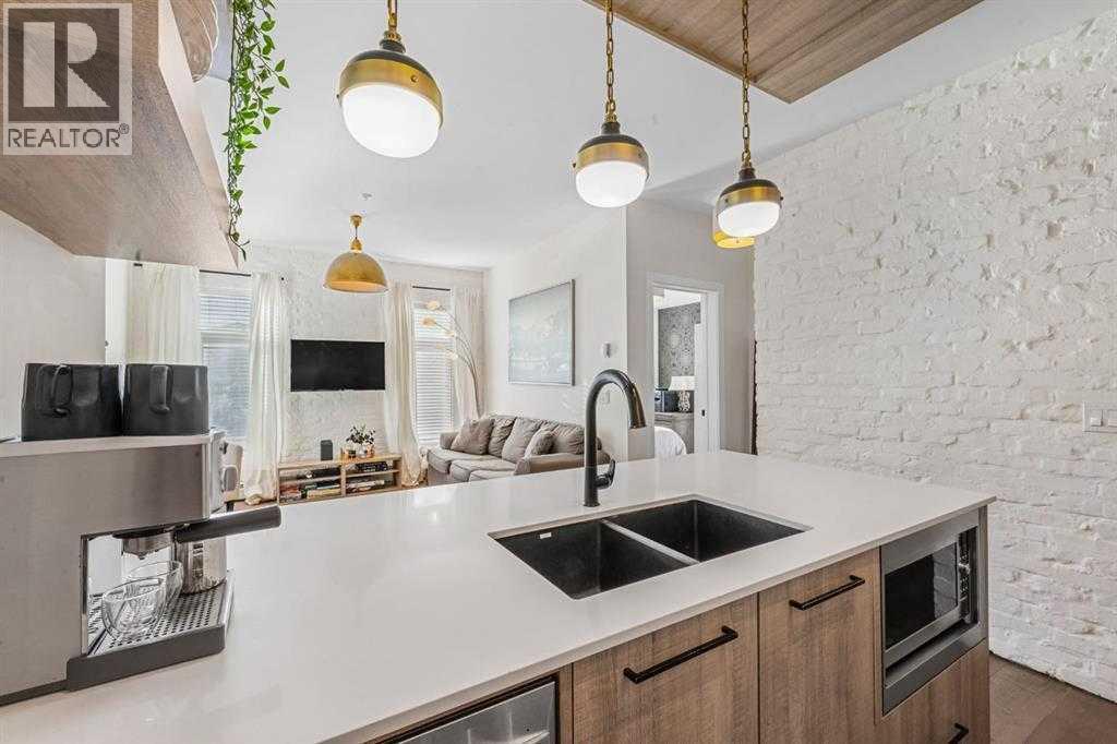 Step into luxury with this ground-floor 2-bedroom, 2-bathroom condo featuring titled underground parking, a storage locker, and low condo fees that include heat and water. Located in a secure, very well managed building next to a golf course, this home is ideal for pet owners, with a dog park and LRT station just a 2-minute walk away.Originally the show home for the building, this condo offers an open-concept layout designed for modern living. The upgraded kitchen flows seamlessly into the living space, while brick accent walls and an enhanced lighting package add a refined, urban touch. The primary bedroom includes a walk-in closet and ensuite, and the second bedroom is generously sized and versatile. A full 4-piece second bathroom, in-suite laundry, and same-floor storage add everyday convenience.Complete with a south-facing patio and close proximity to downtown Calgary, shopping, restaurants, and transit, this move-in-ready home offers the perfect balance of comfort, style, and location. (id:6769)