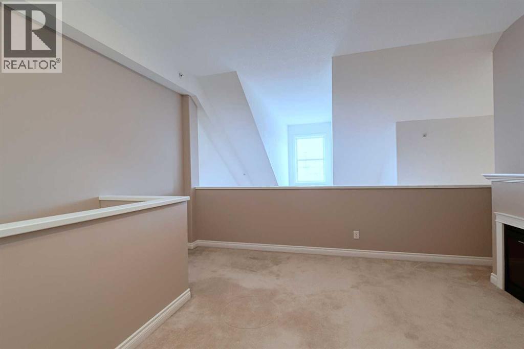 OPEN HOUSE - Sunday, January 25 from 1-4pm: Welcome to this spacious 1,295 sq. ft. multi-level, top-floor condo in the sought-after Country Estates on the Cove, featuring TWO TITLED UNDERGROUND PARKING STALLS and air conditioning.This rare layout offers soaring two-storey ceilings in both the living room and primary bedroom, creating a bright, open feel with impressive natural light. Freshly painted throughout, the open-concept living and dining areas flow seamlessly into the kitchen with solid maple cabinetry. A combined laundry and pantry room adds excellent convenience and storage, while the balcony is accessed directly from the living room.The primary bedroom features a dramatic vaulted ceiling, walk-through closet, and private 4-piece ensuite with double vanity. A second bedroom, additional 4-piece bathroom, and an open loft overlooking the living room complete the layout. The loft includes a 2-piece bathroom and electric fireplace, ideal for a home office or flexible living space.This well-managed 40+ adult community offers exceptional amenities including a fitness centre, indoor pool, hot tub, recreation room with games and bowling alley, library, woodworking shop, guest suites, car wash bay, and assigned storage. Condo fees include all utilities.Conveniently located near shopping, parks, and walking paths, with easy access to Deerfoot Trail, Stoney Trail, transit, and the airport. (id:6769)
