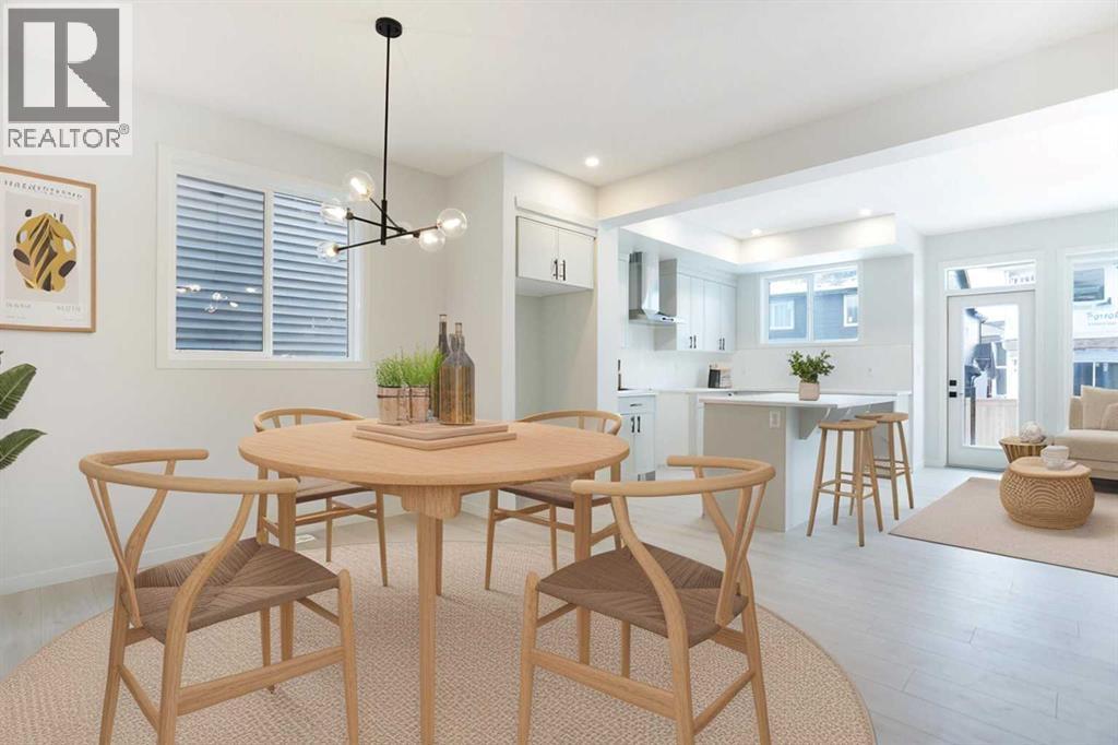 Welcome to this beautifully designed Morrison Homes Dillon I model, a striking two-storey semi-attached home situated in the highly desirable and rapidly growing community of Sirocco at Pine Creek. Offering over 1,600 sq. ft. of thoughtfully finished living space above grade, this home combines modern elegance with practical design, complemented by a front-attached double garage and an intelligently planned layout that effortlessly balances style, comfort, and everyday functionality for families of all sizes.The main floor is designed for both entertaining and everyday living, featuring an open-concept layout bathed in natural light, highlighted by light grey luxury vinyl plank flooring that flows seamlessly throughout. The contemporary kitchen is a true centerpiece, equipped with sleek grey cabinetry accented with black hardware, quartz countertops, and a generous central island—perfect for meal preparation, casual dining, or social gatherings. Stainless steel appliances complete the kitchen, while the adjacent dining and living areas are enhanced by a striking grey tile feature wall with an electric fireplace, creating a warm, inviting, and modern focal point that effortlessly blends style and function.A thoughtfully designed mudroom with built-in cabinetry and storage provides a seamless transition from the garage, keeping everyday essentials organized and accessible. The main floor is completed with a convenient powder room, offering both practicality and style for family life and entertaining.Upstairs, the home continues to impress with three well-appointed bedrooms, including a private primary suite designed for comfort and relaxation. This retreat features a spacious walk-in closet and a beautifully finished ensuite bathroom with tiled flooring and a contemporary glass shower enclosure, offering a spa-like experience in the comfort of your own home. Two additional bedrooms are generously sized and share a full bathroom, also finished with high-quality m odern tile. Top-floor laundry adds convenience to your daily routine, while soft carpeting throughout the upper level enhances comfort and warmth throughout the private spaces.The unfinished basement presents an exceptional opportunity for future development, providing a versatile blank canvas where additional living space, recreational areas, or extra bedrooms can be tailored to suit your family’s evolving needs and lifestyle preferences.Situated in a vibrant and growing southwest community with easy access to parks, walking and cycling pathways, local schools, and future amenities, this home combines thoughtful design, modern finishes, and long-term flexibility. From the stylish interiors to the functional layout and prime location, the Dillon I model at 49 Creekside Passage is a home that truly delivers a refined balance of comfort, elegance, and enduring value for discerning buyers seeking both quality and lifestyle in one of Calgary’s most sought-after neighbourhoods. (id:6769)