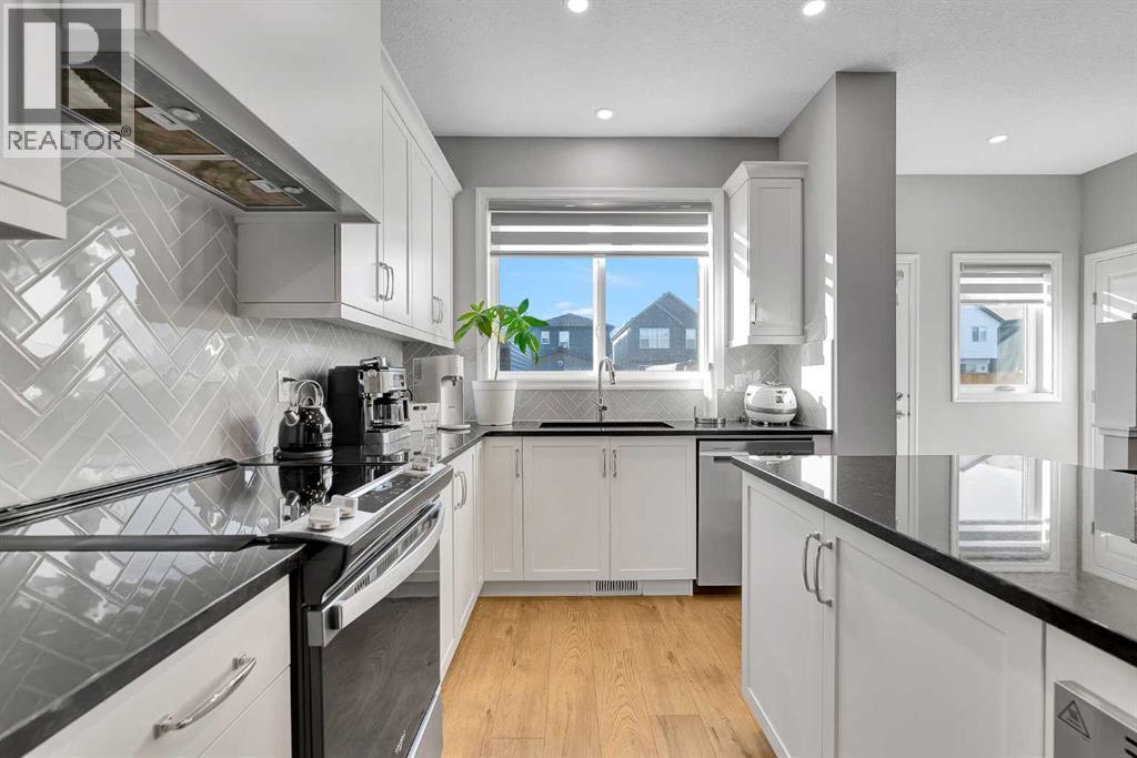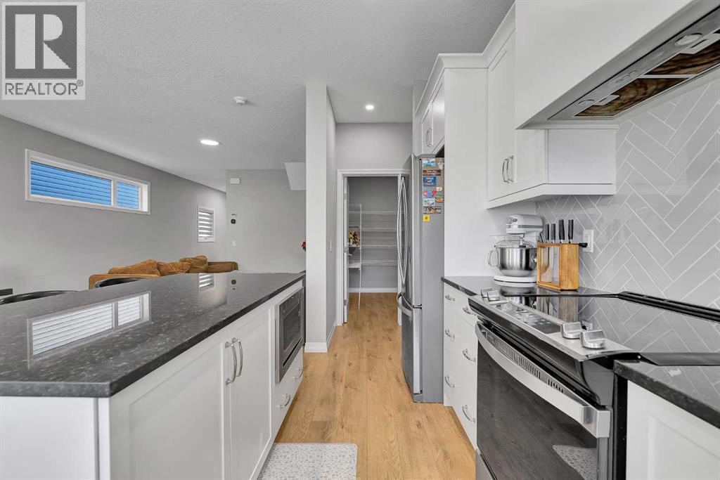 Welcome to this thoughtfully designed Jayman built, SOLAR EQUIPPED townhouse with NO CONDO FEES and PARKING FOR TWO VEHICLES. This bright, modern home offers a functional multi level layout that feels spacious, private, and practical for everyday living. The main floor features an open concept living space anchored by a sleek kitchen with a flush eating bar, elegant BLACK PEARL GRANITE countertops, full walk in pantry, and STAINLESS STEEL APPLIANCES including a French door refrigerator with icemaker, upgraded glass cooktop, and a built in cabinet hood fan. Large windows fill the space with natural light, and TRIPLE PANE WINDOWS THROUGHOUT provide exceptional energy efficiency, comfort, and sound insulation. A few steps up, you will find a well sized bedroom and a full bathroom, perfect for guests, children, or a home office setup. The upper level is dedicated to comfortable family living, featuring a spacious primary suite with a five piece ensuite that includes dual vanities, a standalone shower, and a Rockford tub, plus a generous walk in closet. A third bedroom with its own walk in closet sits just down the hall, along with a convenient UPPER FLOOR LAUNDRY ROOM. The UNFINISHED BASEMENT OFFERS INCREDIBLE POTENTIAL with ROUGHED IN PLUMBING FOR A FULL BATHROOM, TWO FULL SIZED WINDOWS, and an EXTRA HIGH CEILING, giving you flexibility to create an additional bedroom, home gym, media room, or secondary living space in the future. This home is equipped with premium mechanical and smart features including a GOODMAN HIGH EFFICIENCY TWO STAGE FURNACE with MERV media filtration, a FANTEC HEAT RECOVERY VENTILATION SYSTEM, NAVIEN TANKLESS HOT WATER, and modern LED lighting with pot lights throughout. Smart home upgrades include ALEXA INTEGRATION, FIVE KASA SMART LIGHT SWITCHES, a SCHLAGE WIFI ENCODED DEADBOLT, RING DOORBELL, and an ECOBEE 5 SMART THERMOSTAT. SIX SOLAR PANELS further enhance energy savings and sustainability. Steps from walking paths, parks, and green space, with South Health Campus, Cineplex, and major shopping just minutes away. Residents also enjoy access to THE BLOCK COMMUNITY CENTRE, a 14,000 square foot facility featuring multi use rooms, a half gymnasium, kitchen, gathering spaces, plus outdoor amenities including a splash park, skating area, fire pit, picnic shelters, hockey rink, basketball courts, tennis and pickleball courts, playground, and amphitheatre. A rare combination of modern design, energy efficiency, smart technology, and lifestyle amenities, this home truly checks all the boxes. (id:6769)