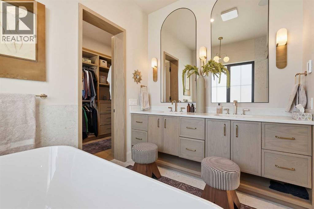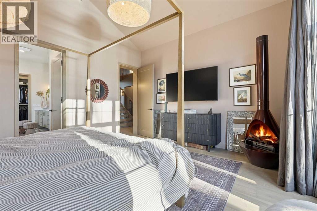 OPEN HOUSE SATURDAY, JANUARY 24TH FROM 1-4 PM & SUNDAY, JANUARY 25TH FROM 1-3 PM. Enduring sophistication defines this beautifully crafted 2+2 bedroom residence in North Glenmore Park, offering more than 4,200 sq ft of refined living space with exceptional attention to detail throughout. The main level showcases wide-plank hardwood floors and soaring ceilings, setting the stage for an impressive living room highlighted by a dramatic vaulted ceiling with chandelier, a floor-to-ceiling window, and a stunning Venetian plaster fireplace. The thoughtfully designed kitchen is a chef’s delight, appointed with custom oak cabinetry, premium quartz countertops, a generous island with eating bar, high-end appliances, and a well-equipped butler’s pantry. Adjacent to the kitchen, the spacious dining area easily accommodates gatherings of family and friends. The main floor primary retreat provides a serene escape, complete with a walk-in closet and a luxurious 6 piece ensuite featuring in-floor heat, dual sinks, a freestanding soaker tub, and an oversized shower with heated bench and floor. A second bedroom with its own 4 piece ensuite offers ideal comfort for guests. A stylish 2 piece powder room, a practical mudroom with ample storage, and a dedicated laundry room with sink and cabinetry complete the main level. Upstairs, the loft area offers an inviting space to unwind, featuring a family room, games area, wet bar, 2 piece bath, and a charming library nook. The fully developed basement extends the home’s versatility with heated floors, a family/media room with bar and wine storage, and a separate games area—perfect for movie nights or entertaining. A glass door behind the bar leads to a room roughed in for a future sauna and shower. Two additional bedrooms, two 3 piece baths (including one ensuite & the other with a steam shower), and a second laundry room complete the lower level. Additional highlights include central air conditioning, custom draperies, two vacuum systems wit h attachments, and built in speakers. Outdoors, enjoy custom window well railings, an underground irrigation system, a sunny south-facing front patio, and a private back deck with natural gas BBQ hook-up and a beautiful wood-burning fireplace. Parking is effortless with a triple detached garage wired for 220 volt service. Ideally located within walking distance to Glenmore Athletic Park and close to two golf courses, top-rated schools, shopping, public transit, and major routes including Crowchild and Glenmore Trails, this exceptional home offers an unparalleled blend of luxury, comfort, and convenience. (id:6769)