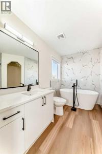 Welcome to this beautifully updated home located in the highly sought-after community of Cranston. Offering 4 bedrooms and 3.5 bathrooms, this home has been extensively renovated from top to bottom and is truly move-in ready.The main floor features a bright and open living space with beautiful accent wall ,large windows , filling the home with natural light. The brand-new kitchen has new cabinets, new appliances and a central island. A convenient half bathroom and laundry room complete the main level. New laminate flooring has been installed throughout the main and upper floors, including the stairs.Upstairs, you’ll find a spacious bonus room, perfect for family time or relaxing evenings, along with three well-sized bedrooms and a full bathroom. The primary bedroom offers a walk-in closet and a fully refreshed ensuite with new fixtures and finishes.The fully finished basement is ideal for a larger family, offering a generous living area, a spacious bedroom with its own closet, full bathroom, and separate laundry .Outside, enjoy the backyard with a deck, perfect for summer gatherings. The home also features an attached garage, driveway parking, newly installed roof, providing peace of mind for years to come. Additional upgrades include new flooring throughout, fresh paint, new taps and fixtures in all bathrooms, and many more updates throughout the home.Situated in the vibrant community of Cranston, known for its parks, scenic pathways, schools, shopping centres, and easy access to amenities, this home offers the perfect balance of comfort, style and location. (id:6769)