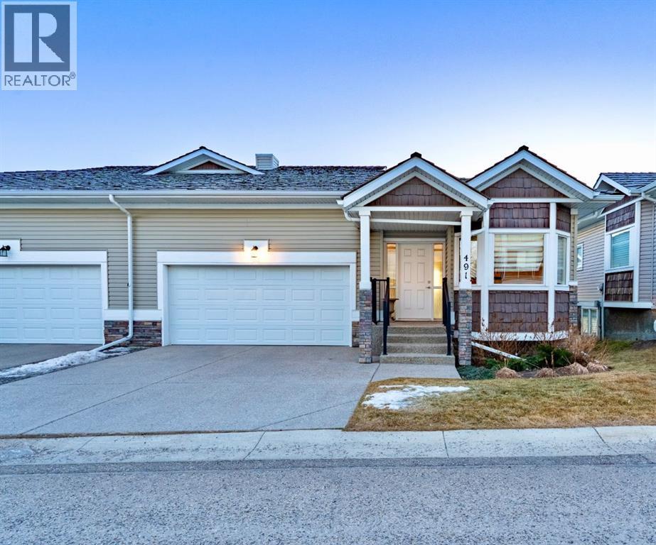 Welcome to 491 Rocky Vista Gardens NW, a well-kept bungalow villa townhouse located in the desirable community of Rocky Ridge. Built in 2016 and one of the newer units in the complex, this home offers comfortable, low-maintenance living with thoughtful upgrades and outstanding mountain views. The main floor features an open layout with vaulted ceilings over the kitchen and family room, creating a bright and spacious feel. The kitchen includes designer cabinetry, stone countertops, and stainless steel appliances, and opens nicely to the dining and living areas—ideal for everyday living and casual entertaining. Hardwood flooring runs through most of the main level, along with built-in cabinetry that adds both storage and character. At the front of the home is a flexible room that works well as a home office, TV room, study, or formal dining space. The primary bedroom is a comfortable retreat with mountain views, a 4 piece ensuite, and his-and-hers closets.The fully finished walkout basement offers 9-foot ceilings, in-floor heating, a large family room, two additional bedrooms, and a full bathroom—great for guests, hobbies, or extra living space. Additional features include central air conditioning, a double attached garage, solid hardwood floors, and modern finishes throughout. The complex is well managed, has low turnover, and is known for its quiet setting and mature demographic. The HOA provides access to the Rocky Ridge community association and clubhouse amenities, including tennis courts, playgrounds, a water feature, and shared facilities. Conveniently located with easy access to Stoney Trail and Crowchild Trail, and close to shopping, transit, parks, and pathways. A solid opportunity to own a quality bungalow villa in a well-run complex with excellent views. (id:6769)
