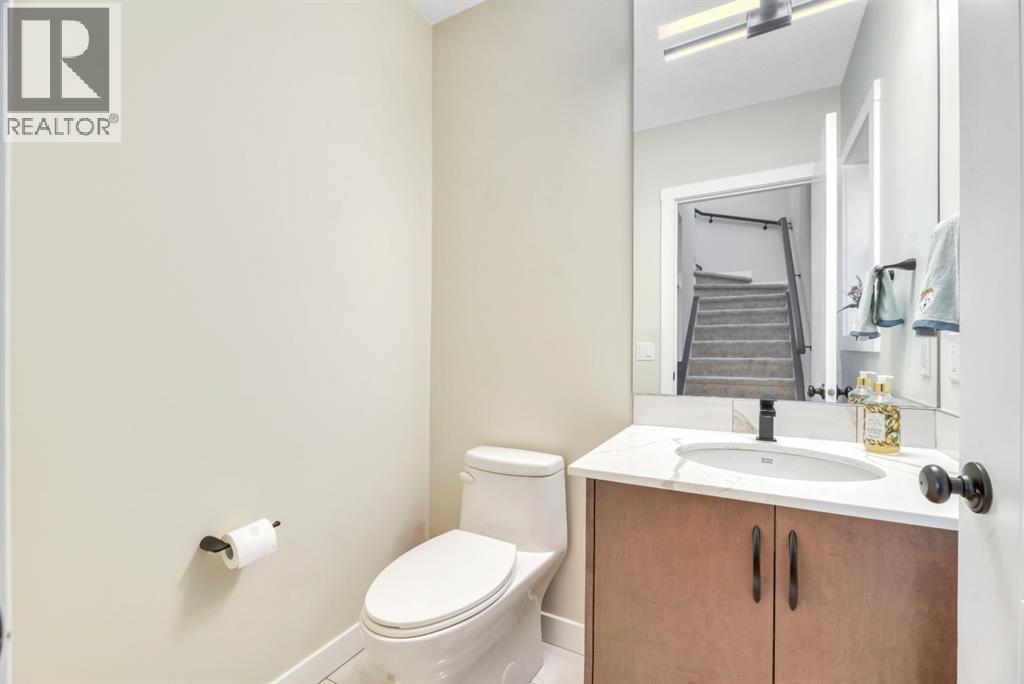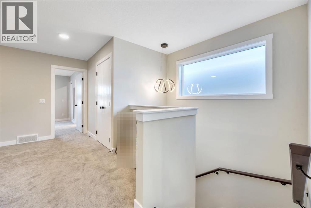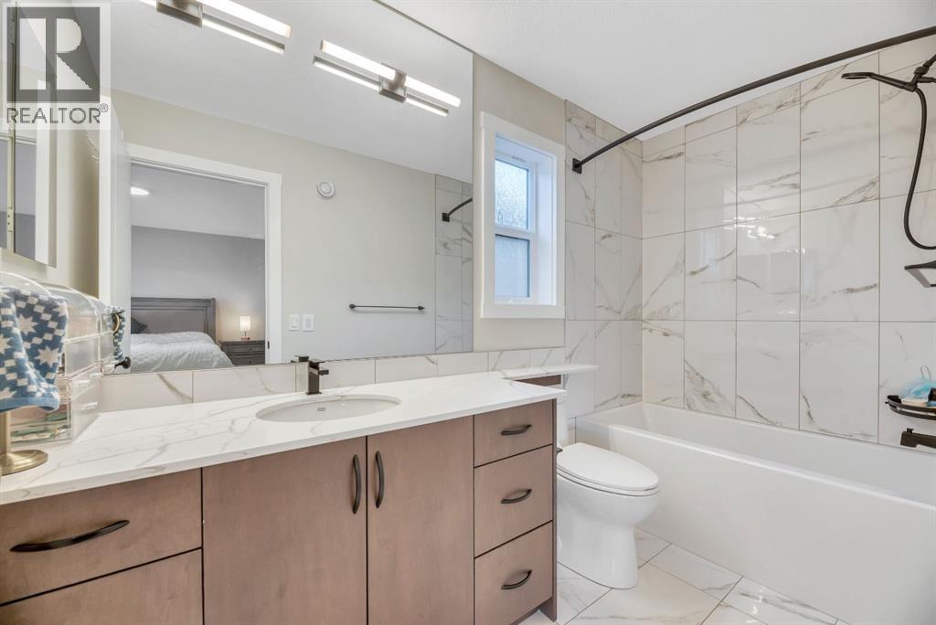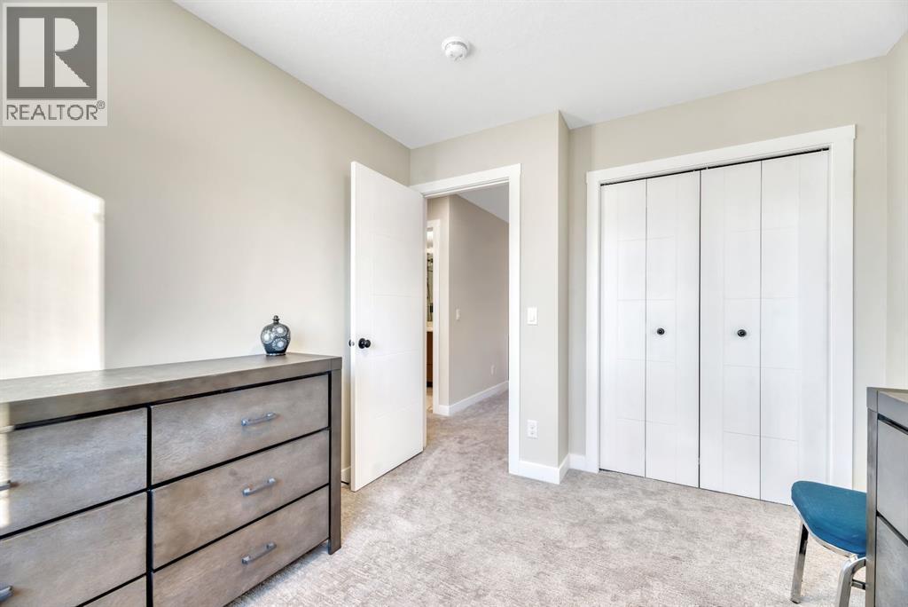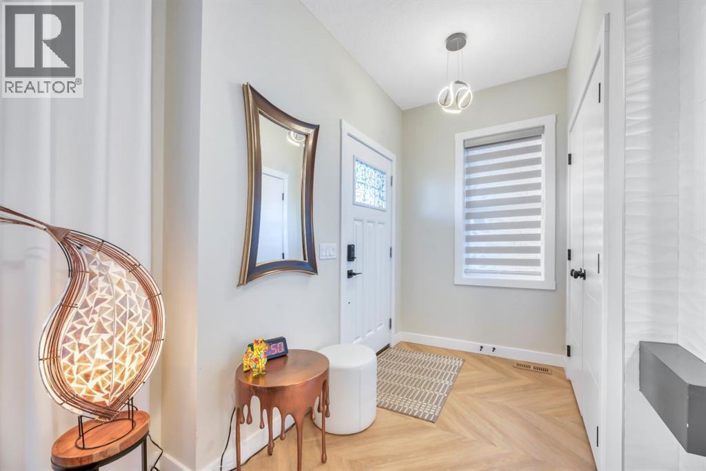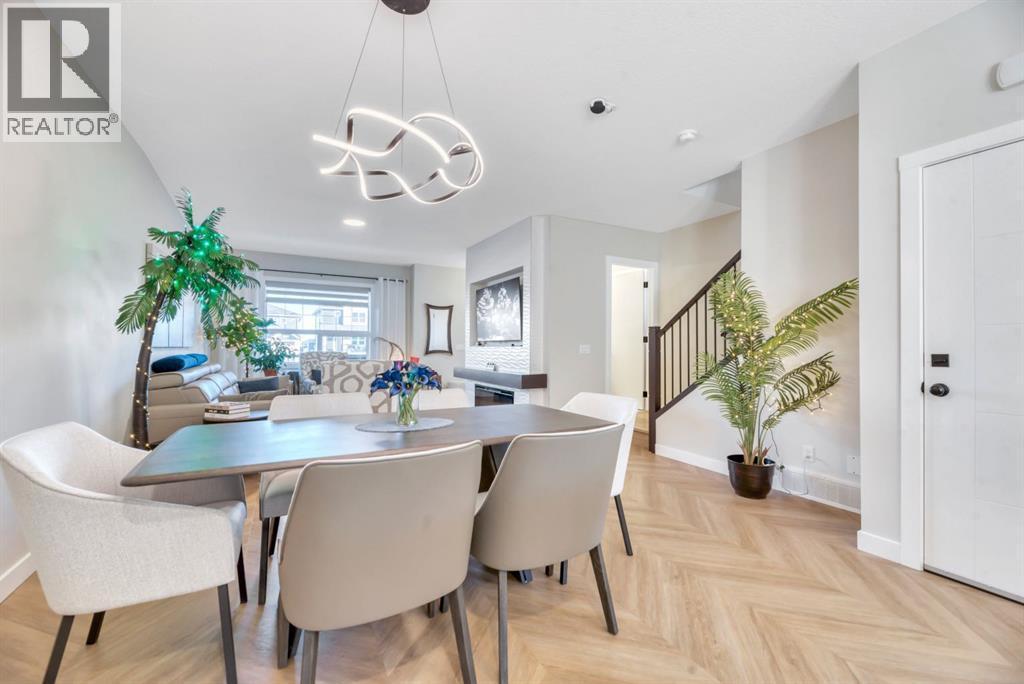 Live Up in Luxury and have your home work for you down! Immensely upgraded and fully finished semi-detached home with a LEGAL BASEMENT SUITE and double detached garage, ideally located in the growing community of Pine Creek in Calgary's beautiful SW. Modern Designed with both style and functionality in mind, this home offers an exceptional opportunity for homeowners, investors, or multi-generational living.The main residence showcases a thoughtfully upgraded interior featuring CHEVRON FLOORING on the main level, a stunning WATERFALL ISLAND, ceiling-height HIGH END CABINETRY, tiled backsplash, under-cabinet lighting, and upgraded appliances—all anchored by a modern, open-concept layout. A recessed tiled TV wall with electric fireplace and mantle adds warmth and architectural interest to the living space. Black plumbing fixtures and matching door hardware provide a cohesive, contemporary finish throughout.Upstairs, enjoy upgraded carpet, custom cabinetry in the pantry and primary closet, upgraded window coverings, and beautifully finished bathrooms. The spa-inspired upper main bath features tiled floors, a fully tiled walk-in shower with waterfall rain head and slide bar, sliding glass door, and upgraded vanities with Banjo countertops. The primary ensuite has a relaxing bath/shower in addition to the spacious countertop and extra storage in the vanity. All bathrooms—including the powder room—offer upgraded cabinetry with additional drawers and easy-clean upgraded toilets.The maintenance-free backyard is fully fenced and complete with a cement patio and gas line for BBQ, ideal for outdoor enjoyment. The double detached garage is insulated, drywalled, and equipped with extra storage shelving, with the added benefit of joined garages allowing a full 4’ walkway to the rear alley. A 50-amp breaker for future EV charging, electrical hookup for A/C, keyless entry, Ring doorbell, and upgraded lighting package further elevate the home’s value.The LEGAL basement suite is equally impressive, finished with luxury vinyl plank flooring throughout (including stairs), separate utility meters, and a private side entrance with a poured sidewalk leading to the front walkway—offering excellent rental potential or space for extended family.A rare combination of high-end finishes, smart upgrades, and income potential, thoughtfully designed, this turnkey opportunity is not to be missed. (id:6769)