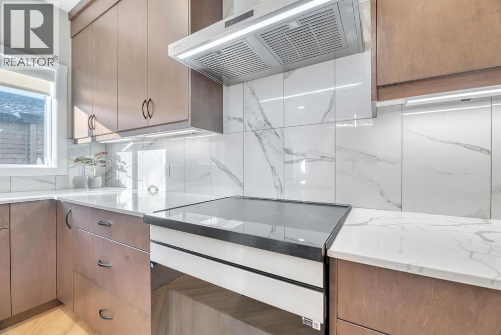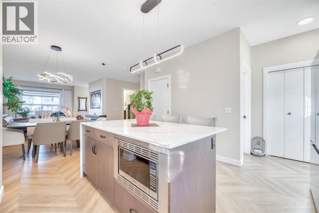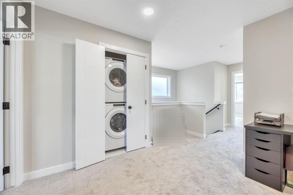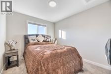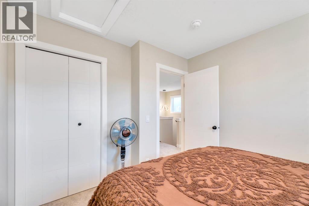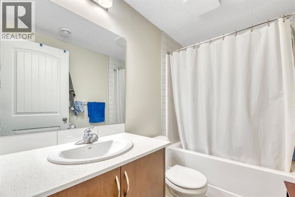 Live Up in Luxury and have your home work for you down! Immensely upgraded and fully finished semi-detached home with a LEGAL BASEMENT SUITE and double detached garage, ideally located in the growing community of Pine Creek in Calgary's beautiful SW. Modern Designed with both style and functionality in mind, this home offers an exceptional opportunity for homeowners, investors, or multi-generational living.The main residence showcases a thoughtfully upgraded interior featuring CHEVRON FLOORING on the main level, a stunning WATERFALL ISLAND, ceiling-height HIGH END CABINETRY, tiled backsplash, under-cabinet lighting, and upgraded appliances—all anchored by a modern, open-concept layout. A recessed tiled TV wall with electric fireplace and mantle adds warmth and architectural interest to the living space. Black plumbing fixtures and matching door hardware provide a cohesive, contemporary finish throughout.Upstairs, enjoy upgraded carpet, custom cabinetry in the pantry and primary closet, upgraded window coverings, and beautifully finished bathrooms. The spa-inspired upper main bath features tiled floors, a fully tiled walk-in shower with waterfall rain head and slide bar, sliding glass door, and upgraded vanities with Banjo countertops. The primary ensuite has a relaxing bath/shower in addition to the spacious countertop and extra storage in the vanity. All bathrooms—including the powder room—offer upgraded cabinetry with additional drawers and easy-clean upgraded toilets.The maintenance-free backyard is fully fenced and complete with a cement patio and gas line for BBQ, ideal for outdoor enjoyment. The double detached garage is insulated, drywalled, and equipped with extra storage shelving, with the added benefit of joined garages allowing a full 4’ walkway to the rear alley. A 50-amp breaker for future EV charging, electrical hookup for A/C, keyless entry, Ring doorbell, and upgraded lighting package further elevate the home’s value.The LEGAL basement suite is equally impressive, finished with luxury vinyl plank flooring throughout (including stairs), separate utility meters, and a private side entrance with a poured sidewalk leading to the front walkway—offering excellent rental potential or space for extended family.A rare combination of high-end finishes, smart upgrades, and income potential, thoughtfully designed, this turnkey opportunity is not to be missed. (id:6769)