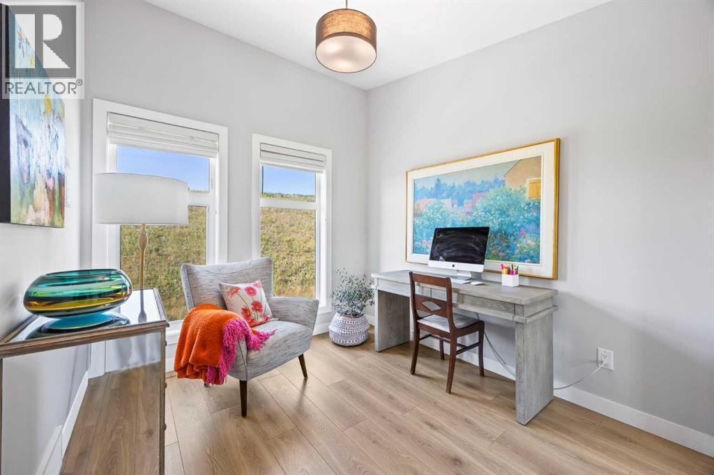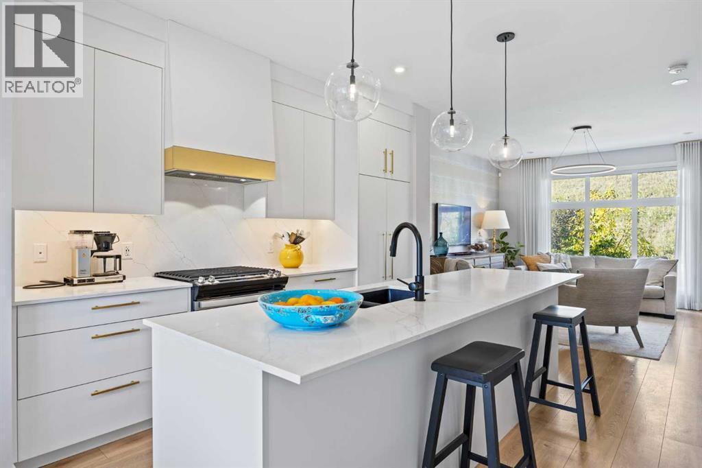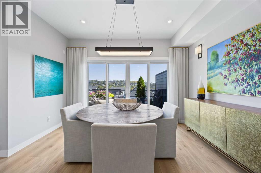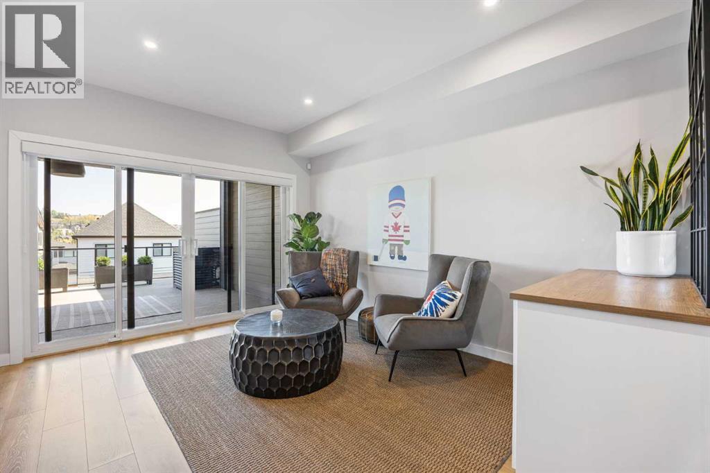 Welcome to effortless luxury in the community of Springbank Hill. This modern three-storey townhome offers over 2,500 sq ft of thoughtfully designed living space, perfectly blending style, comfort, and everyday function.Perched at the top of the hill, this home enjoys incredible views—sunsets over the Rocky Mountains to the west and a tranquil greenspace backdrop. With an east-west orientation and oversized windows, natural light floods every level, creating a warm and inviting atmosphere throughout the day.The main floor makes a striking first impression with 9’ ceilings, luxury vinyl plank flooring, and designer lighting. The open-concept kitchen features stainless steel appliances—including a gas range—sleek quartz counters, and direct access to the dining area. Just beyond, a generous deck with elegant glass railings extends your living space outdoors, perfect for morning coffee or relaxed dinners with a view.Upstairs, the primary suite offers a private 4-piece ensuite and a large walk-in closet. Two additional bedrooms share a full bathroom and convenient upper laundry, making this level ideal for family living.The fully finished walkout level is designed for entertaining and relaxation, complete with a large rec/media room that opens to a covered lower deck of over 400 sq ft, framed with glass railings to maximize the surrounding natural views. A flexible den and third full bathroom complete this level, offering space for guests or a home office.Additional highlights include an oversized heated garage, a private elevator servicing all levels, and turnkey convenience that supports both an active lifestyle today and the ability to “age in place” tomorrow. All of this, just minutes from shops, great restaurants, schools, and everyday amenities—with quick access to Stoney Trail for a seamless commute downtown or an easy escape to the mountains.This is executive living in Springbank Hill—sophisticated, functional, and designed for the way you want to live. (id:6769)