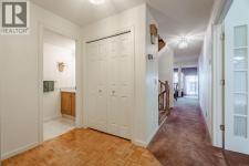 Welcome to Woodridge Estates; ideally nestled alongside the parks and pathways of beautiful Fish Creek Park, this inviting two-storey semi-detached townhome offers over 1,960 sq. ft. of above-grade living space plus a fully developed lower level. You are promptly welcomed by a large foyer with gleaming parquet floors that adjoins a versatile office or flex room. The functional kitchen offers ample counter space for meal prep and entertaining, along with a bright breakfast nook that opens onto a deck—perfect for BBQing or enjoying your morning coffee. The kitchen also provides easy access to the formal dining room. Just a few steps down, the generous family room features a charming brick fireplace and access to a second deck, ideal for hosting family and friends. A two piece bathroom completes this level. Upstairs, the expansive primary bedroom includes a sitting area, walk-in closet, and a five-piece ensuite with jetted tub. The second bedroom is generously sized. A four-piece main bath and convenient upper-level laundry complete this floor. The developed lower level offers a games area, additional flex space, and a two-piece bathroom, along with a large storage and utility room. The double attached garage is drywalled and insulated for added comfort. This home has excellent bones and offers a fantastic opportunity for updates to suit your style. Located in a quiet, upscale townhome community, it provides easy access to schools, transit, Anderson Road, Stoney Trail, Fishcreek Park and all the amenities—making it a wonderful place to call home. (id:6769)