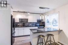 Welcome to this beautifully updated 3-bedroom, 1.5-bathroom townhome located in the heart of Marlborough Park! Step inside to find a stunning kitchen featuring granite countertops, sleek black stainless steel appliances, crisp white cabinetry, a stylish stone backsplash, and bright modern lighting. The open-concept living and dining area with plenty of room for entertaining, while the south-facing patio doors fill the space with natural light. This location is next to marlbrough park and 3 schools. A chic half bath completes the main floor. Upstairs, you’ll find a spacious primary bedroom with dual closets, two additional bedrooms—and a beautifully renovated 3-piece bathroom with tile accents and a contemporary vanity.The finished lower level provides a versatile bonus area—perfect for a media room, home gym, or kids’ playroom. Enjoy sunny days in the south-facing backyard, ideal for barbecues and gatherings, with direct access to a peaceful green space.This home also comes with two assigned parking stalls right at the front door. Don’t miss your chance to own this move-in-ready townhome in a fantastic central location! (id:6769)