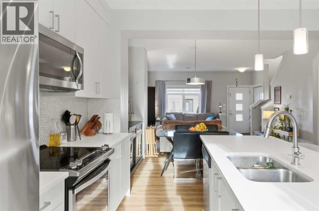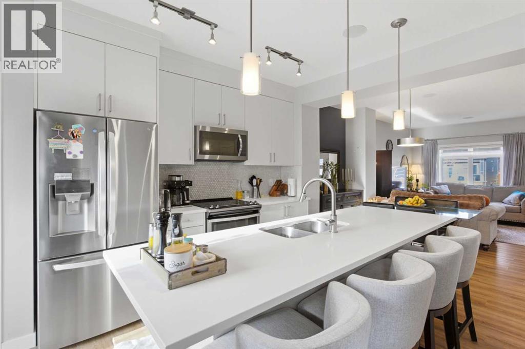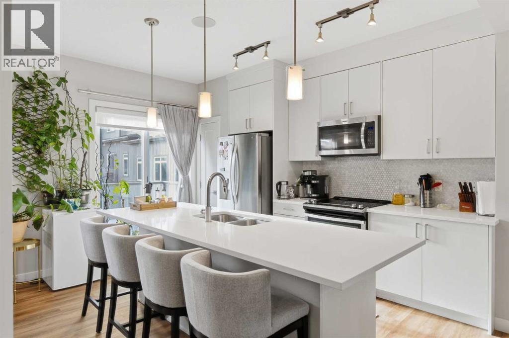 *** OPEN HOUSE SATURDAY JANUARY 24, 2-4PM *** Welcome to this awesome Sage Hill townhome with low condo fees! This former show-home has been beautifully cared for and features 3 spacious bedrooms, 2.5 bathrooms, and a rare double side-by-side garage. Out front, you’ve got your own private patio and garden with a gas line for the BBQ, plus air conditioning to keep things cool on those hot summer days—perfect for morning coffee or evening hangouts with friends.Inside, you’ll love the easy main-floor access, 9' ceilings, big bright living room windows, and built-in speakers that add a nice touch. The open layout flows into a large dining area and an impressive chef’s kitchen, complete with a 9-foot quartz island that comfortably seats four, ceiling-height white cabinets, white subway tile backsplash, stainless hardware, and a full stainless steel appliance package. There’s also a handy pantry and a convenient door leading out to the sunny south-facing balcony, ideal for grilling and entertaining.A cozy den area off to the side works perfectly as a home office or entertainment space, and a stylish 2-piece bath with bronze fixtures finishes off the main floor.Upstairs, all three bedrooms are bright and welcoming with large windows. The Primary Bedroom features a walk in closet and full Bathroom with Quartz counter and timeless subway tile backsplash the additional two bedroom are comfortable retreats filled with natural light and a full bathroom that's clean and modern also having a quartz countertop and sleek white subway tile backsplash complete the upper level.Downstairs, the unfinished basement is a great blank canvas. It includes the laundry and mechanical room, plus plenty of extra space for storage or future development.This home offers comfort, practicality, and energy-conscious living in one of Calgary’s most desirable communities—just minutes from Walmart, T&T Supermarket, the public library, playgrounds, and quick access to Stoney Trail for an easy commute.Book your private showing today and see it for yourself! (id:6769)