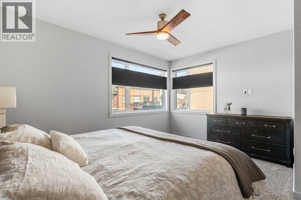 This private northeast-facing residence in an intimate four-unit condo complex, ideally located in the heart of Crescent Heights. Exceptionally well maintained, this attached two-storey home offers a modern, clean design with a comfortable and private feel throughout. A consistent, muted earth-tone palette enhances the cohesive aesthetic across the main and upper levels, complemented by 9’ ceilings on all floors and central A/C. The main level features a spacious open-concept layout ideal for both everyday living and entertaining. The kitchen is the focal point, complete with a centre quartz island with double sink, telescoping faucet, garburator, and generous bar seating. Stainless steel appliances include an electric stove, refrigerator, microwave hood fan, and dishwasher, while soft-close cabinetry provides ample storage. Hardwood flooring flows through the main living areas, and a convenient half bath completes the level. Step outside to the rear deck, equipped with a BBQ gas line and quick access to the detached single-car garage. Upstairs, you’ll find two well-proportioned primary bedrooms, each with walk-in closets and private ensuite bathrooms, creating ideal separation and comfort. Carpet adds warmth to the upper level and staircases, while ceramic tile finishes the ensuite bathrooms. Blackout window blinds are installed throughout, and both ensuites feature upgraded Toto toilets. The lower level offers a full, open, undeveloped basement with painted concrete floors, two oversized windows suitable for future bedrooms, and insulation already in place. Additional upgrades include an ecobee smart thermostat and a Leviton security system with no monthly fees (app-based operation). Located just steps from Crescent Heights’ popular cafes, restaurants, and amenities, and a short bike ride to downtown, this property offers an exceptional blend of low-maintenance living, thoughtful design, and unbeatable inner-city convenience. (id:6769)