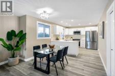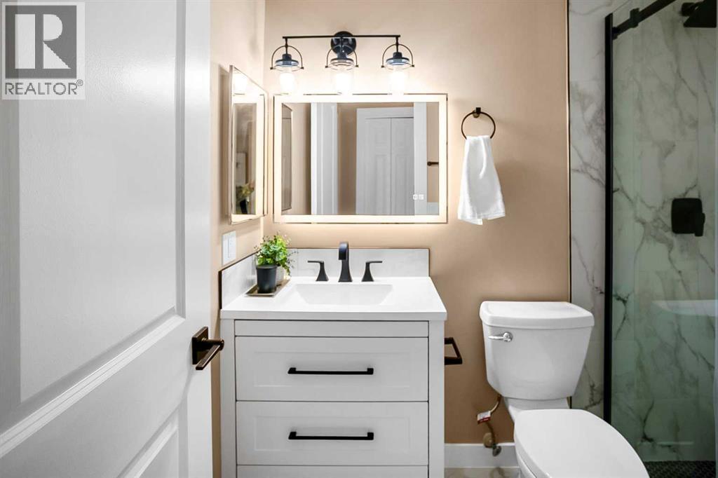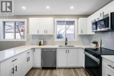 This beautifully updated home offers a RARE heated triple car garage and thoughtful upgrades throughout. The kitchen showcases new quartz countertops, brand-new appliances, and timeless white shaker-style cabinetry, seamlessly flowing into a dining area that easily accommodates a large table that is perfect for family gatherings. The spacious living room is highlighted by a brand-new window, filling the space with natural light from the south-facing exposure. The primary bedroom comfortably fits king-sized furniture and features a large closet and an updated 2-piece ensuite with lots of counter space. Two additional bedrooms offer ample closet space, while the main 3-piece bathroom is complete with a stunning tile-surround shower and 10mm glass. The fully finished basement includes a fourth bedroom, generous recreation room, flex space (previously used as a hair studio), a large 4-piece bathroom, and a laundry room with plenty of storage. Outside, enjoy low-maintenance landscaping and a spacious patio that is ideal for relaxing or entertaining. With ample room for vehicles, toys, and storage, the heated triple-car garage truly sets this home apart. Ideally located just a 2-minute walk to Huntington Hills Off-Leash Dog Park and a 10-minute walk to Beddington Square, offering easy access to all amenities. (id:6769)