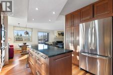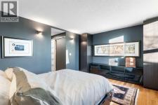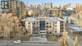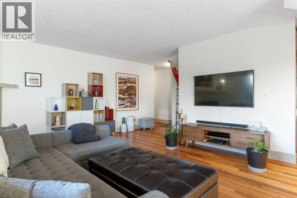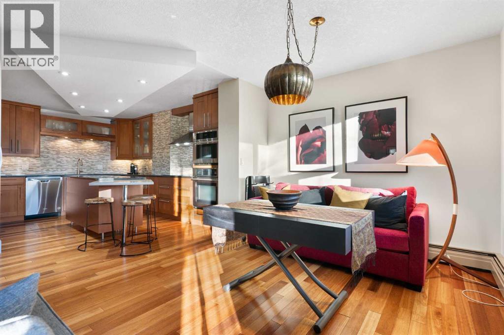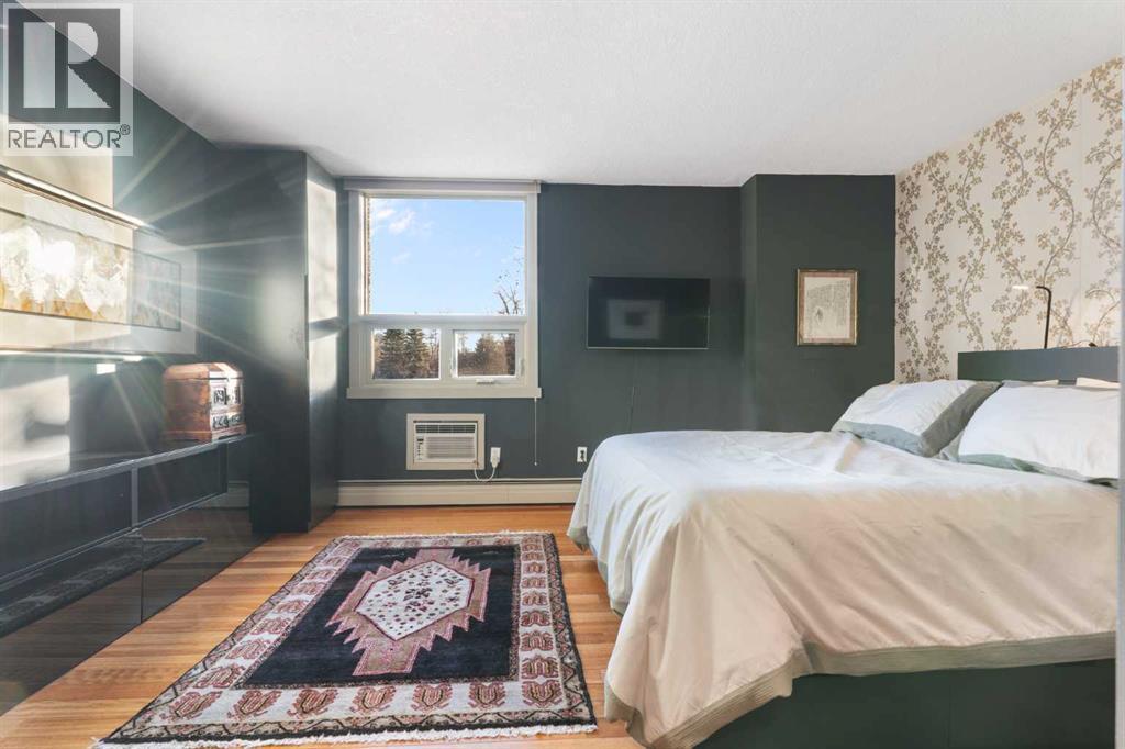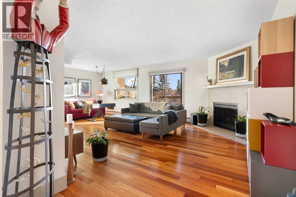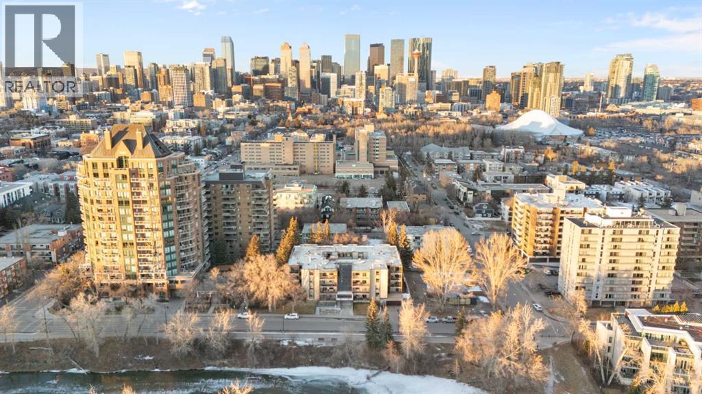 Welcome to this beautifully upgraded Mission condo with stunning, year-round views of the Elbow River. Offering just under 1,200 sq. ft. of well-designed living space, this home perfectly blends nature and urban convenience with river pathways, shops, and restaurants just steps away. The chef inspired kitchen features stainless steel appliances, a statement range hood, separate appliance tower, granite and quartz countertops, and ample custom storage, all with views of the river. Warm hardwood flooring runs throughout the unit. Two spacious bedrooms easily accommodate king size beds, complemented by two fully updated bathrooms. Recent custom closet organizers, excellent maintenance, and move-in-ready condition complete the home. The well managed building showcases classic mid-century modern charm and includes secured underground parking and a separate storage locker. (id:6769)
