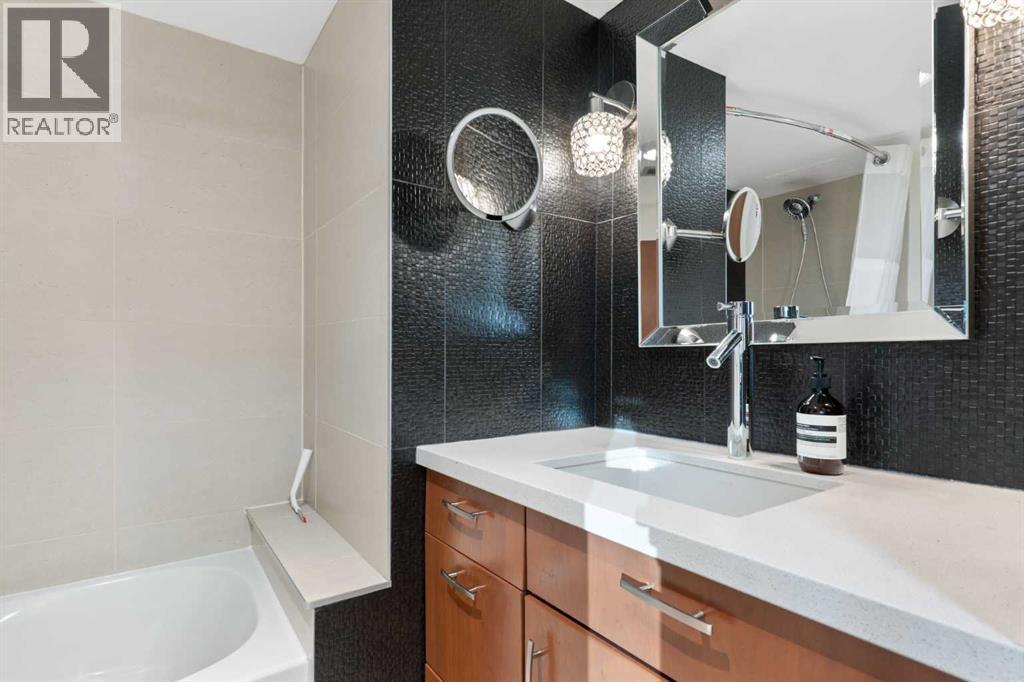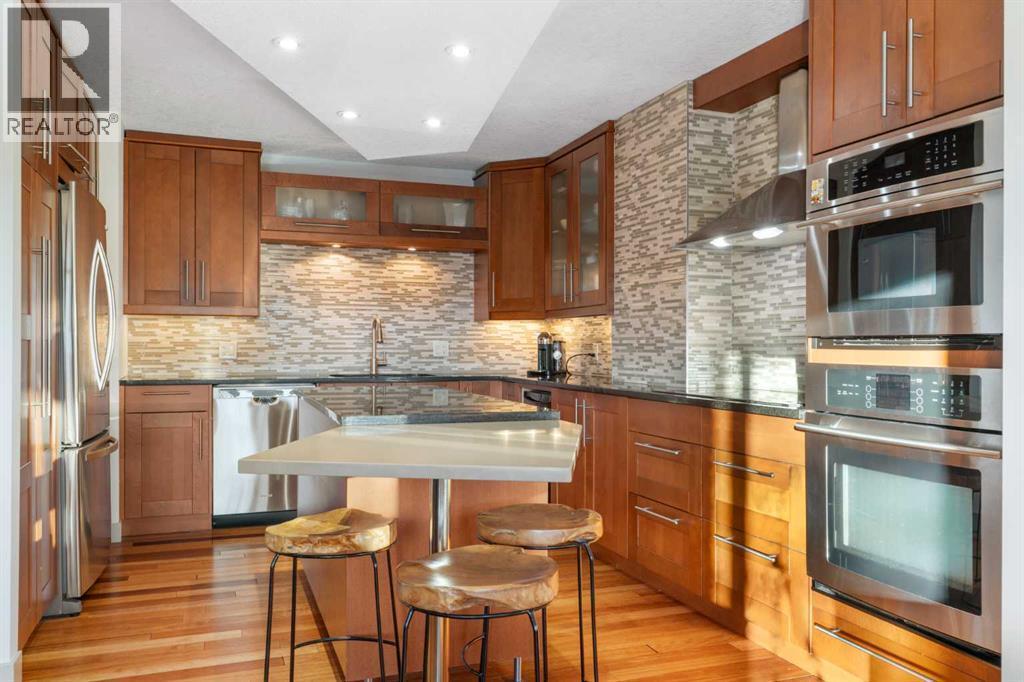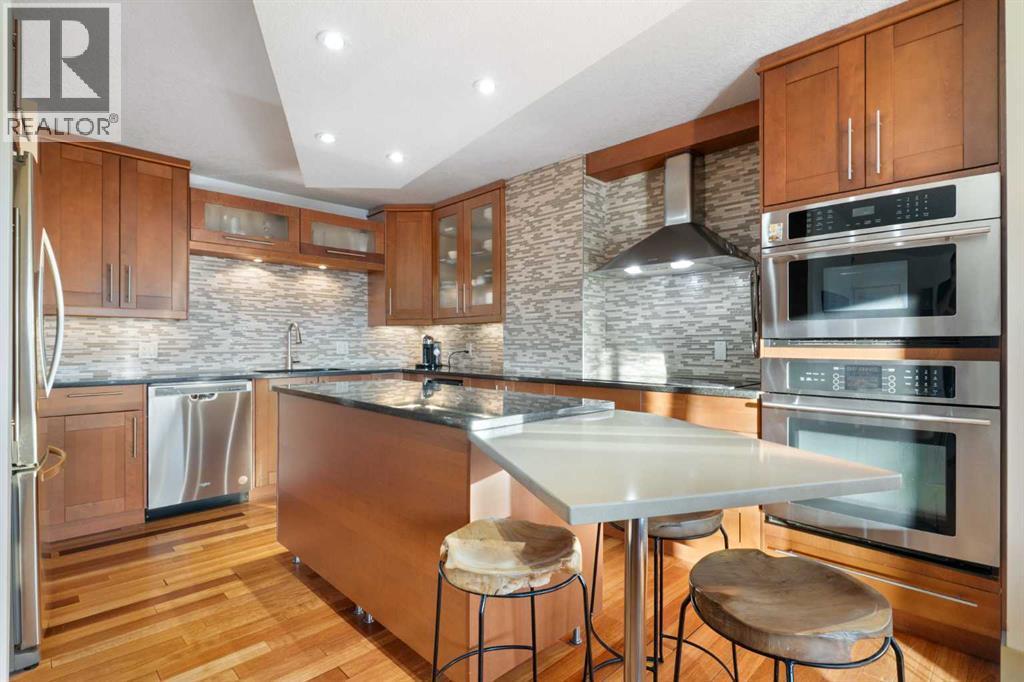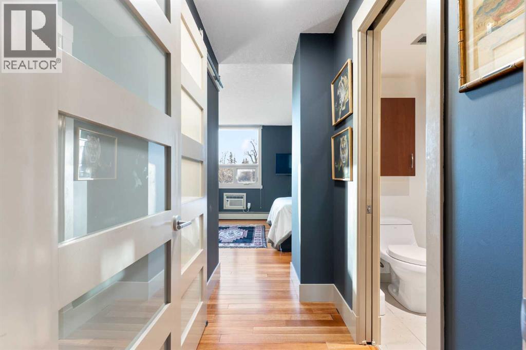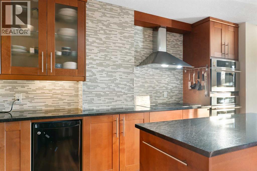 Welcome to this beautifully upgraded Mission condo with stunning, year-round views of the Elbow River. Offering just under 1,200 sq. ft. of well-designed living space, this home perfectly blends nature and urban convenience with river pathways, shops, and restaurants just steps away. The chef inspired kitchen features stainless steel appliances, a statement range hood, separate appliance tower, granite and quartz countertops, and ample custom storage, all with views of the river. Warm hardwood flooring runs throughout the unit. Two spacious bedrooms easily accommodate king size beds, complemented by two fully updated bathrooms. Recent custom closet organizers, excellent maintenance, and move-in-ready condition complete the home. The well managed building showcases classic mid-century modern charm and includes secured underground parking and a separate storage locker. (id:6769)
