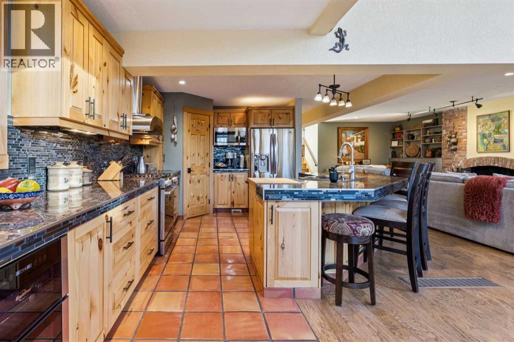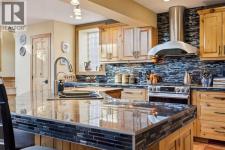 Discover the pinnacle of executive living in this stunning 2,624 sq ft home perched overlooking the serene Varsity Ravine Park. This prime ravine location offers unparalleled tranquility and breathtaking natural views, while being ideally situated on a quiet street in one of Calgary's most sought-after neighborhoods. Step inside to a distinctive floor plan filled with natural light from towering windows adorned with remote-control blinds and custom reflective film—perfect for the west-facing kitchen, dining room, and living room that features a cozy wood-burning fireplace. The heart of the home is the extensively updated kitchen, boasting a large island with a built-in chopping block, gas stove, wine fridge, and newer stainless-steel appliances. Extensive updates include custom built-in cabinetry throughout, enhancing both style and functionality. The upper level welcomes you to a luxurious primary retreat complete with a spacious walk-in closet and a spa-like ensuite featuring a double sink, heated floors, and a no-step walk-in shower with elegant glass block wall. The upper level contains an additional bedroom, and a convenient den overlook the living space below, offering inspiring ravine vistas. The main level provides flexibility with a large recreation room and a bright breakfast nook, ideal for everyday living or entertaining. The lower level features a spacious bedroom with a walk-in closet and built-in storage, plus a 4-piece bathroom. Outdoor living is effortless with a low-maintenance backyard featuring multi-level decks, an outdoor kitchen, and a storage shed backing directly onto the ravine—your private oasis for relaxing and entertaining. The front of the home offers a cozy sitting area and a large driveway leading to an oversized single garage. This exceptional property is perfectly positioned close to the University of Calgary, Market Mall, Foothills Hospital, and just a short walk to the Dalhousie LRT station—combining peaceful ravine seclusion with unbeatable urban convenience. Truly a must see to appreciate the pride of ownership. (id:6769)