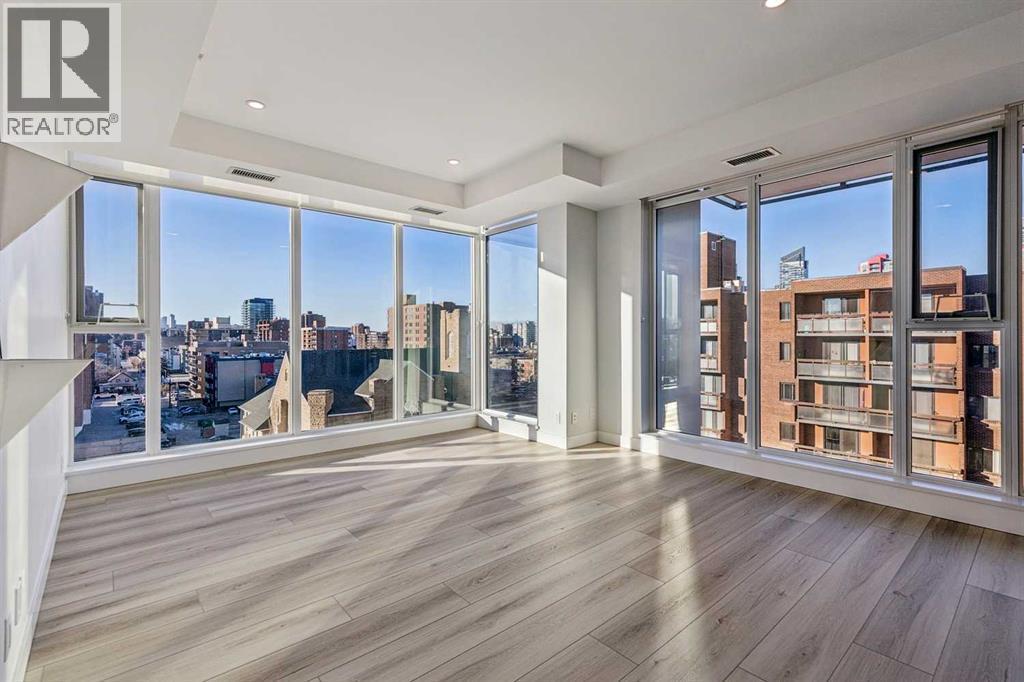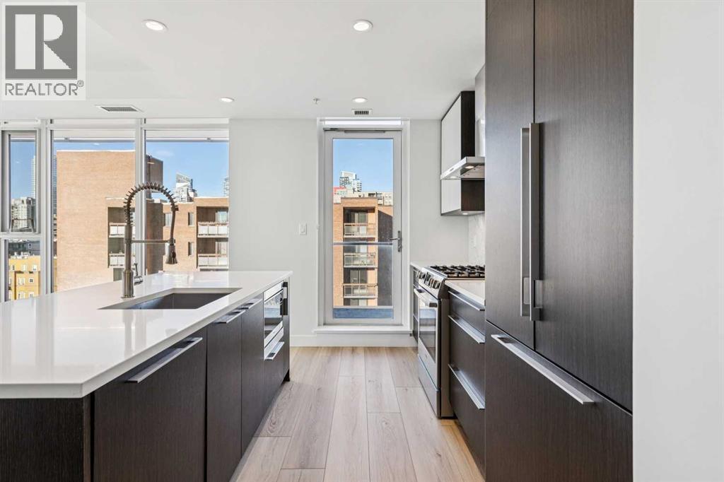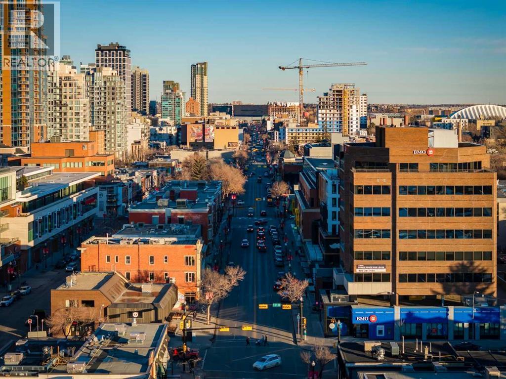 Flooded with natural light, this exceptional corner unit features two walls of floor-to-ceiling windows with beautiful views of the historic Grace Presbyterian Church. Recently updated with brand new flooring in the living areas and bedrooms, the home showcases 9’ ceilings in the living room, high-end finishes throughout, and a sleek, contemporary feel. The chef-inspired kitchen offers a sophisticated blend of dark wood and white cabinetry, quartz countertops, gas range, marble backsplash, and a large central island with breakfast bar. Thoughtful details include a pantry, coffee station, and integrated fridge and dishwasher, making the space as functional as it is stylish. The primary bedroom is a serene retreat with a crisp white ensuite featuring dual vanities, ample storage, a spacious shower, and a walk-in closet with built-in organizers. A second bedroom and full bathroom provide flexibility for guests, a home office, or shared living. In-suite laundry adds everyday convenience. Located in The Royal, a highly desirable building, residents enjoy outstanding amenities including a concierge desk, fitness centre, squash courts, sauna and steam room, a rooftop patio and garden, and a party room with fireplace and pool table. One assigned underground parking stall and a storage locker are included with this unit. Pets welcome with board approval. Set in the heart of vibrant 17th Avenue, this is a true walkable lifestyle surrounded by award-winning restaurants, cafés, boutiques, groceries, and everyday conveniences, with easy access to the downtown core. Perfect for a young professional, stylish couple, or empty nester seeking an active, urban lifestyle in one of the area’s most sought-after buildings. (id:6769)