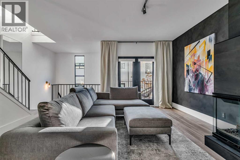 ***OPEN HOUSE: Saturday, January 24th 12:00 - 2:00 PM*** Architecturally distinct and thoughtfully renovated, this STURGESS ARCHITECTURE townhome offers refined urban living in the heart of Betline with SUNNY SOUTH EXPOSURE overlooking a quiet landscaped courtyard. Entry-level access provides a practical foyer with DIRECT GARAGE CONNECTION, creating everyday convenience while maintaining privacy from the street. The main living level is designed around an OPEN-CONCEPT FLOOR PLAN with 9’ CEILINGS and abundant natural light anchored by a dramatic two-storey window wall. The renovated kitchen blends form and function with QUARTZ COUNTERTOPS, A STATEMENT ISLAND WITH CRUSHED GRANITE SINK, FULL-HEIGHT CABINETRY, STAINLESS STEEL APPLIANCES, and A PANTRY WITH PULL-OUT STORAGE, supporting both daily living and entertaining. French doors extend the space outdoors to an OVERSIZED 177 SQ. FT. PRIVATE PATIO, ideal for relaxed evenings and summer gatherings. The main living area is centered around a TWO-SIDED GAS FIREPLACE that provides warmth and architectural interest without disrupting flow, while additional French doors open to a SECOND BALCONY overlooking the courtyard. A tucked-away powder room with stylish wallpaper completes this level. The upper floor is arranged for comfort and flexibility. The primary bedroom easily accommodates a king-sized layout and features a LARGE WALK-IN CLOSET with CHEATER ENSUITE ACCESS to the main bathroom. The 4-piece bathroom includes a STAND-UP SHOWER and A SUNNY SKYLIGHT that fills the space with natural light. The second bedroom enjoys SOUTH-FACING COURTYARD VIEWS, while an OPEN FLEX SPACE with GLASS BLOCK DETAILS creates an ideal office nook or reading area. Laundry is also conveniently located on this level. WIDE-PLANK LAMINATE AND TILE FLOORING flow throughout with NO CARPET, complemented by FLAT-PAINTED CEILINGS for a clean, modern finish. Notable upgrades include CENTRAL AIR CONDITIONING, A HIGH-EFFICIENCY FURNACE, and A NEWER HOT WA TER TANK, offering long-term comfort and efficiency. Outdoor living is enhanced by TWO PRIVATE OUTDOOR SPACES. Parking is thoughtfully arranged with TWO COVERED STALLS, comprised of A PRIVATE INSULATED ATTACHED GARAGE AND A COVERED CARPORT (tandem). Located on a quiet street yet surrounded by everyday amenities, this home offers exceptional walkability with CONNAUGHT SCHOOL AND PLAYGROUND ACROSS THE STREET, easy access to parks, bike lanes, and green space, and close proximity to grocery stores, downtown, the tennis club and the shops and dining along 17TH AVENUE, delivering a highly livable and design-forward inner-city lifestyle. An exceptional setting with rare long-term upside. The adjacent street is slated for permanent transformation into a landscaped green space through an innovative public-realm project by SPECTACLE Bureau and The Tula Project, bringing ENHANCED GREENERY, REDUCED TRAFFIC, AND A CALMER STREETSCAPE that elevates both daily living and future appeal. (id:6769)