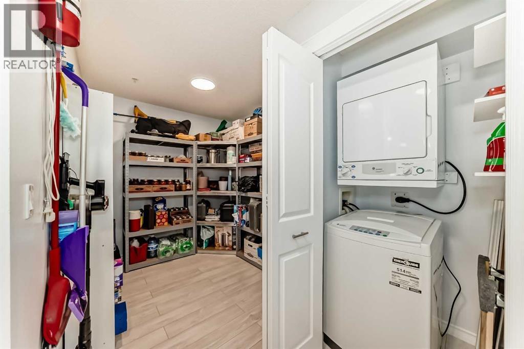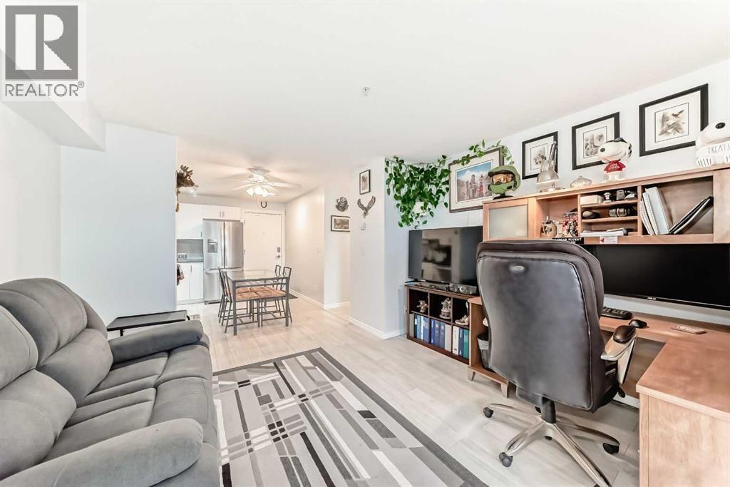Welcome to this beautifully renovated 1 bedroom plus den unit in the desirable community of Evergreen. Bright and inviting this home is filled with natural light and finished in clean, neutral colours throughout. The spacious living room features patio doors that open to a sunny west-facing balcony, perfect for relaxing in the evening with a beverage as the sun goes down. The large open kitchen has plenty of space for a dining table or even a future kitchen island, and is equipped with newer, modern stainless steel appliances, an upgraded 3-rack dishwasher, and built-in cupboard organizers for excellent storage and functionality. The showhome-like bathroom is finished with luxurious marble tile, a dimmable anti-fog mirror, and contemporary fixtures. The generous den provides flexible space for a home office, guest area, or additional storage. This unit is clean, bright, and truly move-in ready with very flexible possession available. The parking stall is conveniently located near the front door, with ample additional street parking available. Ideally located, this home is walkable to everyday shopping, cafes and restaurants nearby, offers easy access to the ring road, and is just a short walk to Fish Creek Park. An excellent opportunity to own a stylish, well-located home in a smaller, more intimate building with 2 elevators. Just move right in! (id:6769)