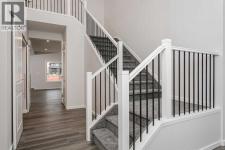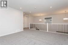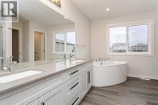 Welcome to this Bedrock Homes quick possession, ideally located on a premium corner lot in the vibrant Heartwood community of SE Calgary. Offering over 2,500 sq ft of thoughtfully designed living space, this home features a central flex room perfect for a home office or guest area, and a striking open-to-below staircase that fills the home with natural light. The chef’s kitchen is equipped with built-in microwave, chimney hood fan, and a large island that opens to the dining area and great room—ideal for entertaining. A 50” electric fireplace adds warmth and style, while metal spindle railings and custom melamine shelving elevate the finish throughout. Upstairs, enjoy a spacious bonus room and retreat to the luxurious primary bedroom featuring a freestanding tub, tiled shower, dual sinks, and private water closet. Complete with a walk-through mudroom and pantry and double attached garage, this home offers exceptional comfort, design, and location close to amenities and parks. Photos are representative. (id:6769)