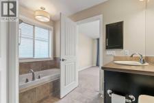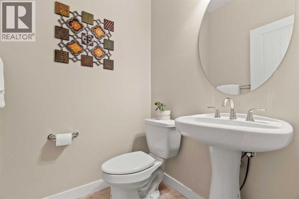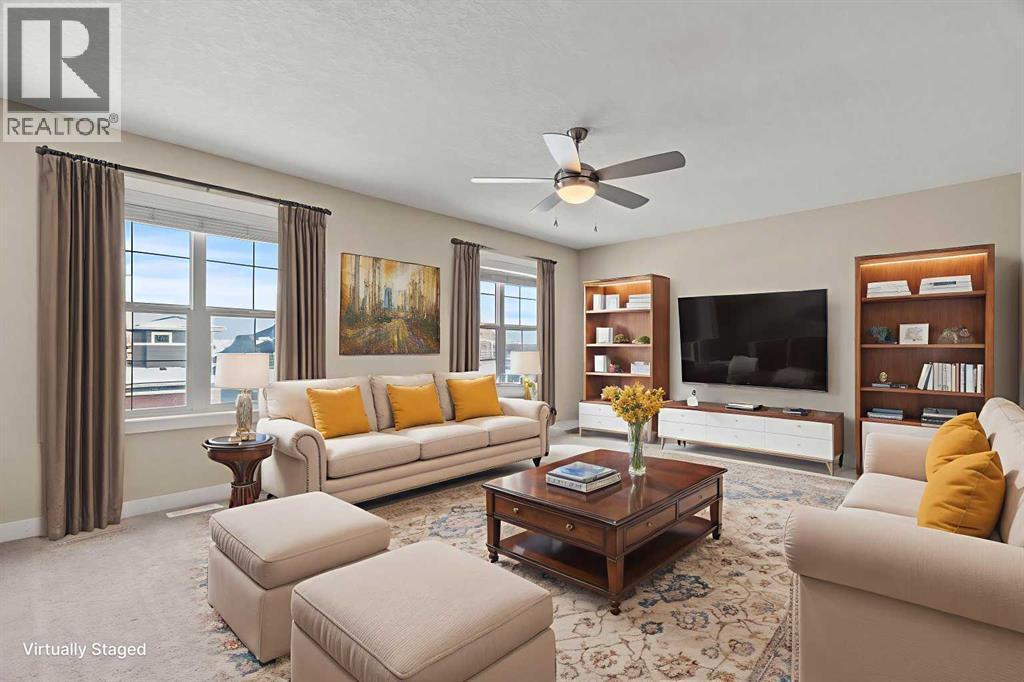 Immaculate, beautifully upgraded, and ideally located on a quiet crescent, this stunning home in Airdrie’s sought-after Bayside community offers the perfect blend of comfort, functionality, and long-term potential—just steps from scenic canals, walking paths, and a nearby elementary school. With nearly 2,000 sq ft above grade plus a fully developed basement, this 3-bedroom, 3.5-bathroom home is designed for modern family living.The bright main level features 9 ft ceilings, hardwood flooring, and an open-concept layout centered around a cozy gas fireplace. The kitchen is both stylish and practical, offering quartz countertops, maple cabinetry, stainless steel appliances, and ample storage and prep space. A main-floor office/den adds valuable flexibility—ideal for working from home or creating a private study.Upstairs, you’ll find a spacious bonus room, convenient upper-floor laundry, and three generous bedrooms. The primary suite is a true retreat, complete with a walk-in closet, soaker tub, and separate shower.The fully developed basement adds even more versatility and includes a separate entrance with private foyer, offering excellent potential for future suite development (subject to City of Airdrie guidelines). Additional updates include a new gas on-demand hot water system for improved efficiency and peace of mind.Outside, enjoy the sunny south-facing backyard featuring a full-width cedar deck and beautifully landscaped yard—perfect for summer BBQs and relaxing evenings. With access to over 6 km of walking paths and the scenic canals of Bayside, this is a home and lifestyle you’ll love.Move-in ready and filled with upgrades in one of Airdrie’s best family communities—book your private showing today! (id:6769)