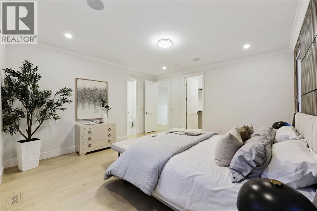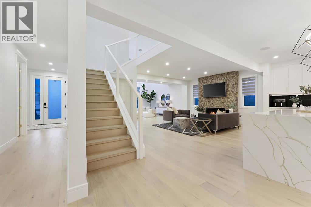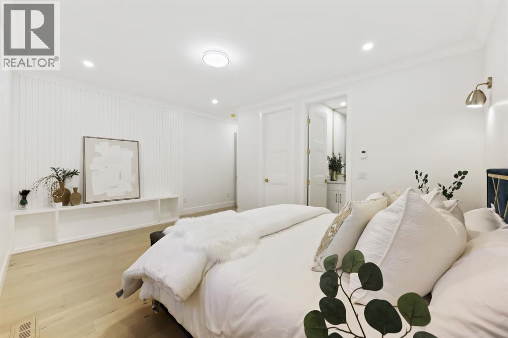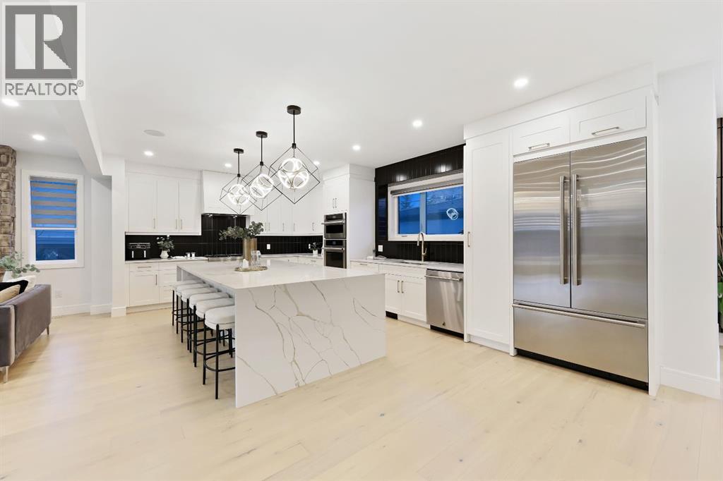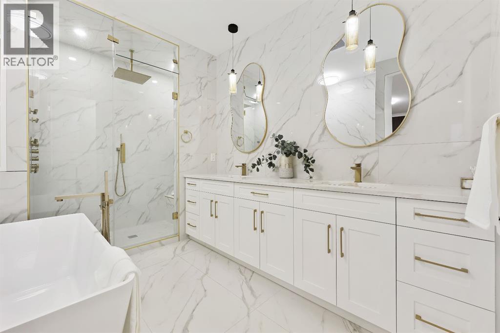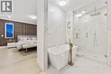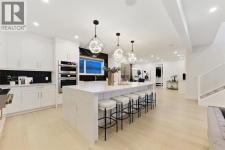 This Modern Art Piece, an exceptional custom-built luxury home located in the heart of Brentwood. Meticulously constructed by the builder as a Modern Master Piece, this home reflects uncompromising craftsmanship, premium materials, and thoughtful design throughout. Offering 7 bedrooms, 5.5 bathrooms, and over 3,600 sq. ft. of well designed living space, plus a fully developed legal basement suite with a private, separate walk-up entrance, This property delivers outstanding versatility and value. The striking contemporary exterior, showcases contemporary brick and Hardie Board finishes, enhanced by professional landscaping and elegant exterior accent lighting. Step inside to be greeted by a dramatic 19-foot ceiling in the main living room with an open-to-below second-storey design, creating a bright and expansive atmosphere. The grand living space is anchored by a custom gas fireplace with stone façade, seamlessly flowing into the gourmet kitchen, with an expensive 10-foot quartz waterfall island which serves as the centre piece perfect for entertaining, complemented by top-of-the-line Jen Air appliances and refined finishes. Adjacent to the kitchen is a stylish dining nook with custom wall paneling, while a thoughtfully designed bar offers an ideal space for evening hangouts or serving guests. A private back entry leads to a functional mudroom. The main floor also features a bedroom with its own 3-piece ensuite, ideal to entertain guests, or for extended family needs, along with another 2-piece designer powder room. Upstairs, enjoy an open bonus room overlooking the living area, framed with modern glass railings, The upper level boasts two luxurious primary bedrooms, each with spa-inspired en-suites featuring floor-to-ceiling ceramic tile, in-floor heating, and premium lavatories throughout. one with steam shower, and a free standing soaker tub, The fully developed basement with 9ft ceiling, includes a legal suite with two bedrooms, a full bathroom, a kitc hen with shaker-style cabinetry, complete appliance package, and its own full-sized washer and dryer, The other portion of the basement offers roughed-in plumbing, ready for Customization to suit your lifestyle needs. The home is equipped with three separate furnaces, providing efficient climate control for each level. The backyard features two single-car garages, along with a finished lawn to complete the outdoor space.The location is truly unbeatable—just steps from Brentwood LRT Station, Brentwood Village, Northland Mall, and K–12 schools. The University of Calgary is only minutes away, and quick access to Crowchild Trail ensures effortless commuting while remaining tucked away ,completely peaceful and quite, An outstanding property with exceptional build quality, modern luxury, and an unbeatable lifestyle in one of Calgary’s most sought-after communities. (id:6769)