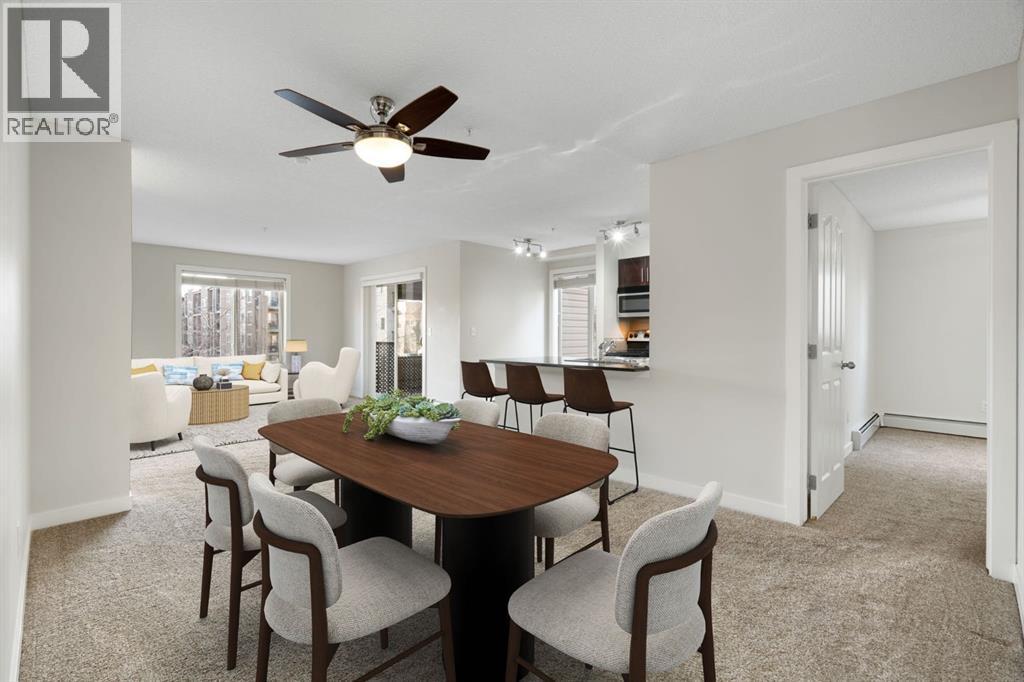 Welcome home to this perfectly situated, bright and sunny, east facing, two bedroom, two bathroom, corner unit on the quiet side of the complex! This one also has a secure, heated, titled underground parking stall! You won't want to miss this one... the foyer (big enough to have in suite storage and/or a home office space) welcomes you home at the end of the day. Step through into this large, open, living space with treed, peaceful, east facing views. The kitchen, with breakfast bar, is the perfect spot for prepping dinner with friends, or hanging out with loved ones on a lazy Sunday morning. There's room for a dining table too, if you're wanting something a bit more formal. The layout is amazing, with the two bedrooms on either side of the floorplan. The generous primary bedroom has a walkthrough closet and 3pc ensuite. There's a second full bathroom and bedroom, as well. The huge, covered balcony is perfect for BBQ season, or for a lounge in the sun, whenever summer returns. Park in your titled, underground spot and walk to all this area has to offer. You're steps from the shops, restaurants, and coffee bars, a few more steps from green spaces and the neighbourhood parks! This one has been lovingly cared for and shows like new! Call your favourite realtor to schedule your showing today! (id:6769)