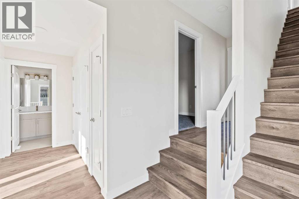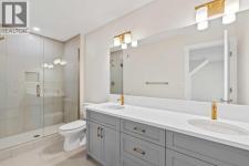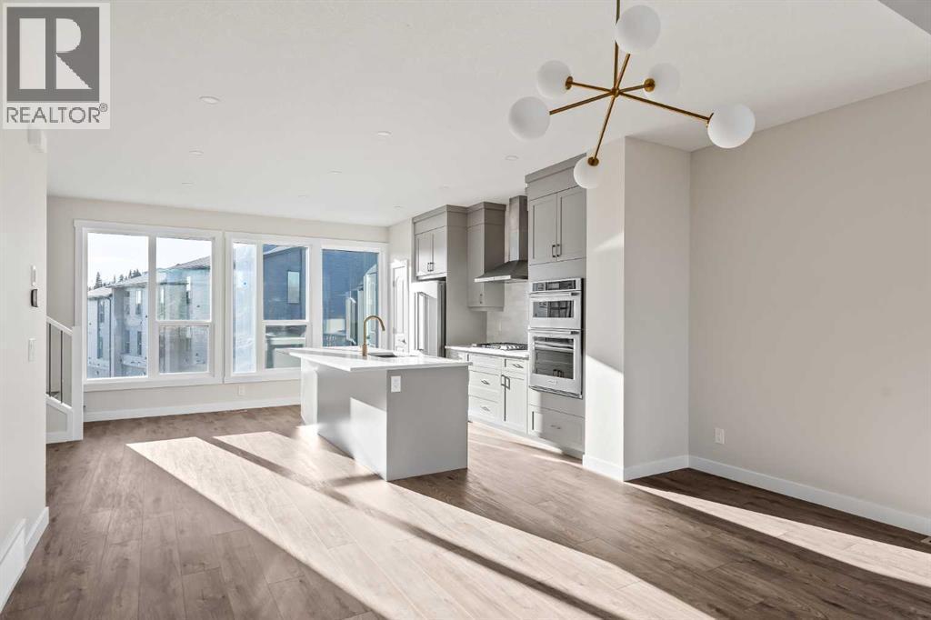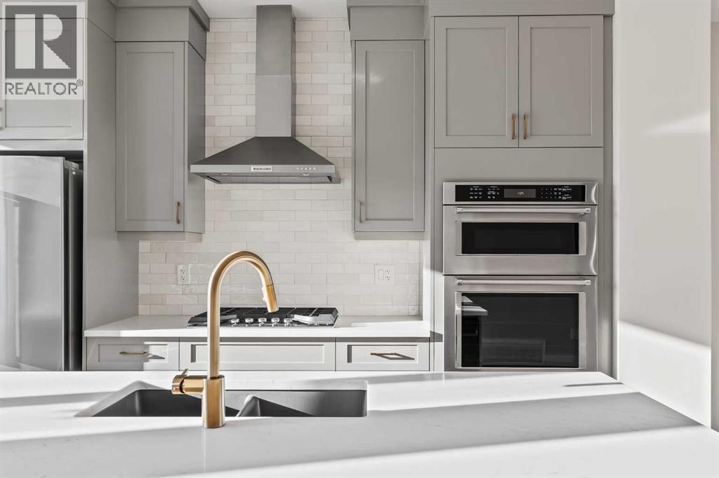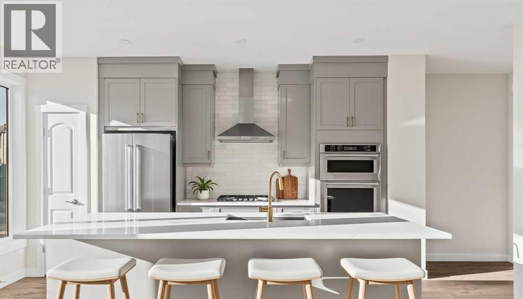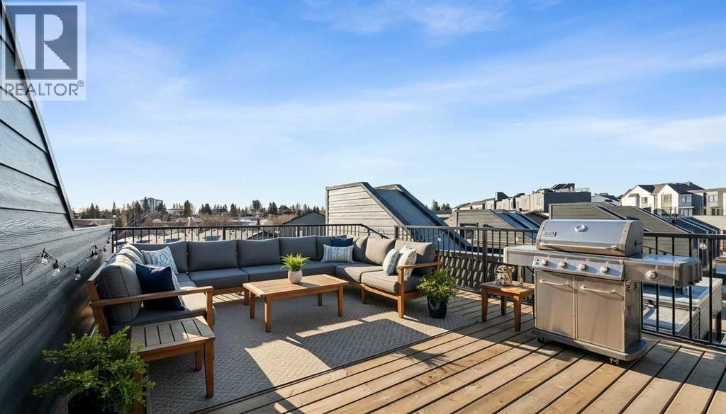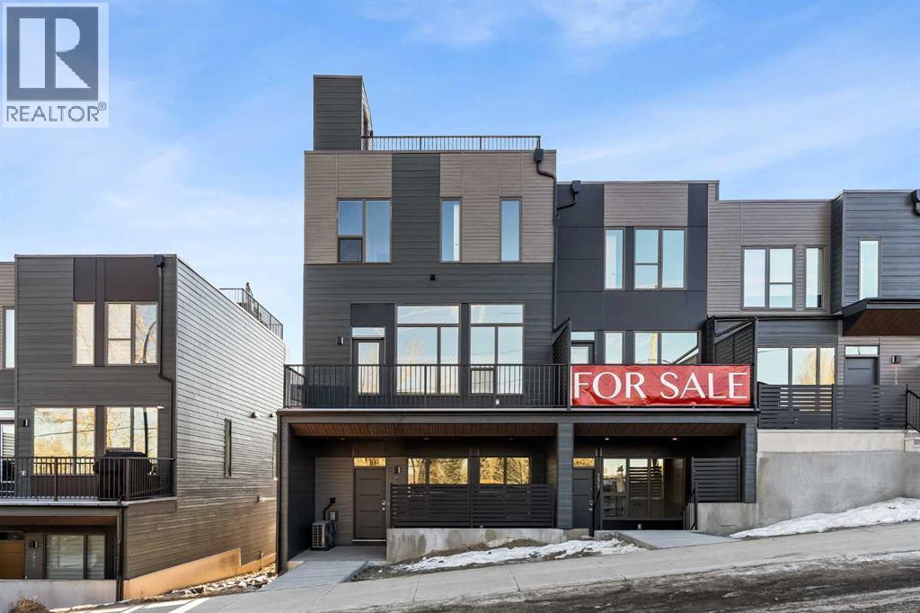 The crown jewel of Crown Park is now available. This exceptional end-unit Stanley townhome presents a rare opportunity to own one of the last remaining residences in this highly sought-after community, offering breathtaking, unobstructed views of Calgary’s downtown skyline while overlooking the Shaganappi Golf Course. At over 2,300 sq. ft. of thoughtfully designed living space, this brand-new urban townhome features 3 bedrooms, 2.5 bathrooms, a dedicated home office, a versatile flex space, and three expansive outdoor living areas, including an impressive 400 sq. ft. rooftop patio. The lower level welcomes you with a covered patio spanning the full width of the home, creating a private outdoor retreat overlooking green space and the street. Inside, a generous ~18’ x 14’ flex room with 10' ceilings offers endless possibilities - ideal for a media room, home gym, studio, fourth bedroom, or additional office space. The main level is designed for effortless entertaining, showcasing a stunning open-concept layout enhanced by walls of windows that flood the space with natural light. The chef-inspired kitchen is beautifully appointed with a gas cooktop, built-in wall oven and microwave, chimney hood fan, and a large central island with seating. Flowing seamlessly into the spacious dining area and family room, the space is anchored by a striking fireplace with a full plaster surround extending to the soaring 11’ ceilings. Step outside to the ~175 sq. ft. balcony, spanning the width of the home and overlooking tranquil green space. The upper level has been intelligently designed with privacy in mind. The luxurious primary suite is positioned at the front of the home and features a wall of windows with green-space views, a large walk-in closet, and a spa-inspired 4-piece ensuite with dual sinks and a tiled walk-in shower. Two additional bedrooms, a full bathroom, upper-level laundry, and a den complete this floor. The rooftop patio is truly an entertainer’s dream - equipped w ith a gas line and ample room for both lounge and dining areas - offering the perfect setting to host guests while enjoying spectacular downtown skyline views. Completing this home is central air conditioning and a private double attached garage and additional storage space to keep your vehicle and valuables safe all year long. This brand new home comes with full builder warranty and Alberta New Home Warranty - allowing you to purchase with peace of mind. This home is ideally suited for professionals, families, or investors seeking a brand-new property with space to grow in one of Calgary’s most desirable inner-city locations, just minutes from downtown. (id:6769)