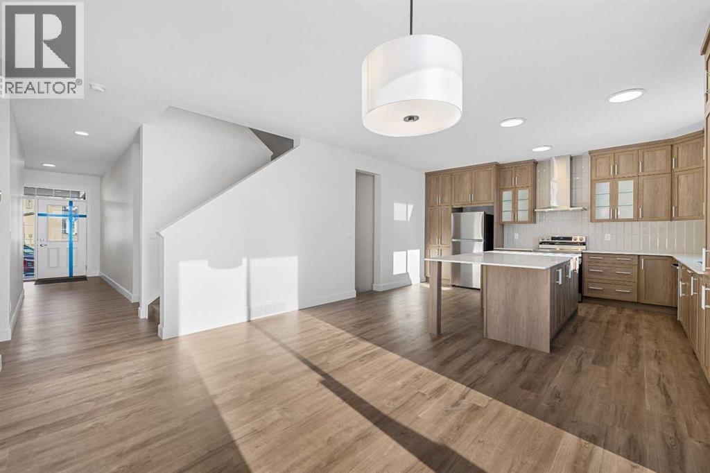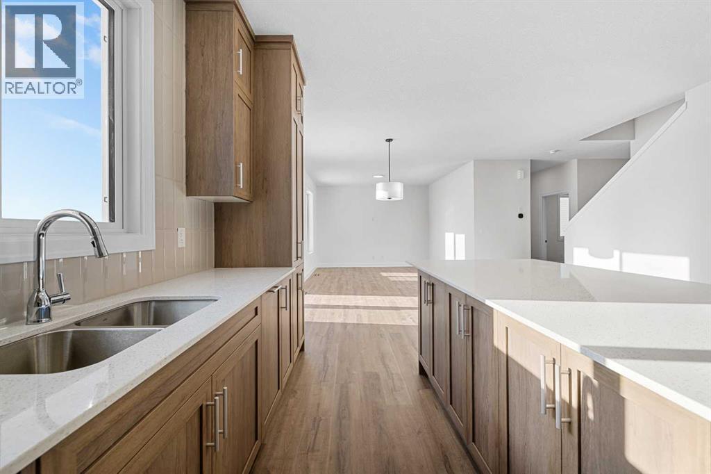 Airdrie is one of Alberta’s fastest-growing cities, offering a perfect blend of modern conveniences and a close-knit community feel. Among its many vibrant neighborhoods, Southwinds stands out as a desirable, family-friendly community with excellent amenities, green spaces, and accessibility. If you’re looking for a brand-new home that checks all the right boxes, this stunning 5-bedroom, 3.5-bathroom property in Southwinds is an ideal choice. Sitting on a spacious pie lot of over 7,000 square feet, this home provides ample outdoor space for gardening, entertaining, or simply enjoying the extra room for your family. Designed with both functionality and style in mind, the house features an open-concept layout, a main-floor bedroom with a full bath, and luxury vinyl plank flooring throughout—no carpet at all! Whether you’re a growing family, an investor, or someone looking for a fresh start in a modern community, this property offers everything you need. One of the standout features of this home is its functional and spacious layout, making it suitable for large families or multi-generational living. The main level welcomes you with a bright and airy open concept design. The spacious living room is perfect for hosting guests, relaxing after a long day, or spending quality time with loved ones. Large windows bring in an abundance of natural light, creating a warm and inviting atmosphere. Adjacent to the living room is the modern kitchen, which boasts ample cabinetry, sleek countertops, and high-end stainless steel appliances. Whether you’re a seasoned cook or someone who enjoys preparing quick meals, this kitchen offers the space and convenience you need. A large island provides additional workspace and doubles as a breakfast bar, making it an excellent spot for casual meals or morning coffee. The dining area, seamlessly connected to the kitchen, offers plenty of space for a large dining table, making family dinners and gatherings even more enjoyable. Sliding glass door s lead to the expansive backyard, which is one of the home’s most impressive features. Main Floor Bedroom & Full Bath – Ideal for Guests or Multi-Generational LivingOne of the biggest advantages of this home is the main-floor bedroom with a full bathroom. This is a rare and highly desirable feature, especially for families with elderly parents, frequent guests, or anyone who prefers to have a bedroom on the ground level. The convenience of having a full bath nearby ensures privacy and ease of access without the need to climb stairs. Moving to the second level, you’ll find a spacious family room, providing an additional living space that can be used as a media room, playroom, or home office. This area is perfect for families who need extra room to relax without using the main living area downstairs. The primary bedroom is a true retreat, offering ample space, a large walk-in closet, and a luxurious ensuite bathroom. Featuring dual sinks, a spacious shower, and elegant finishes. (id:6769)