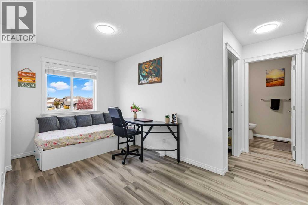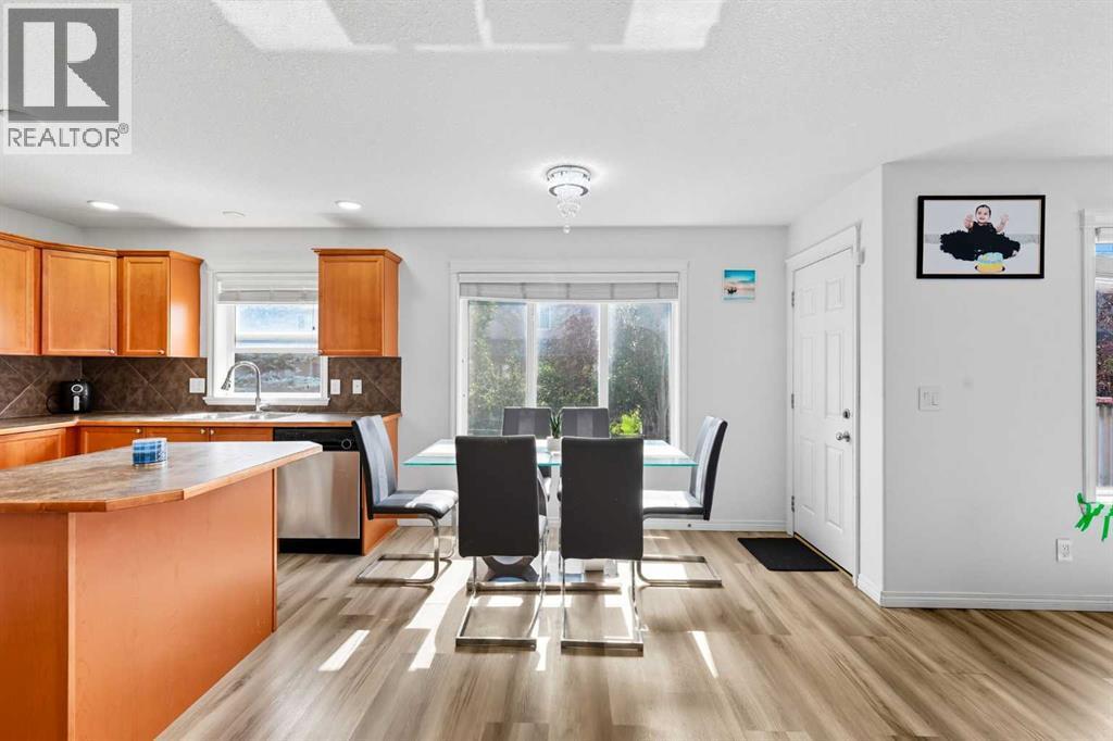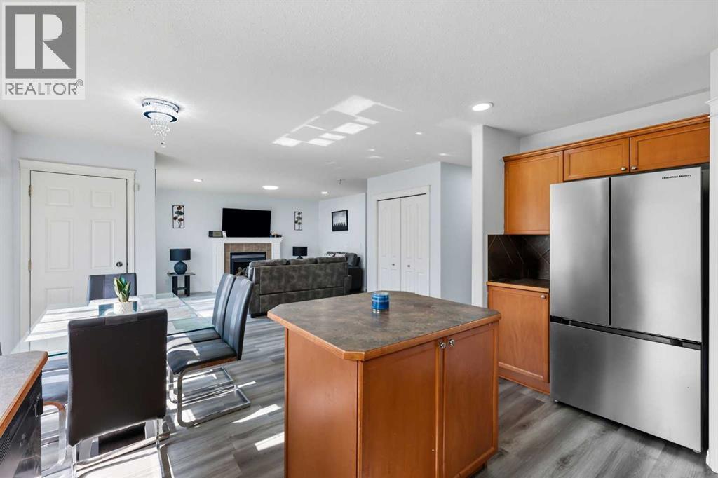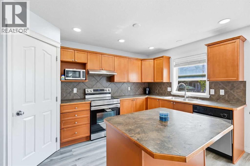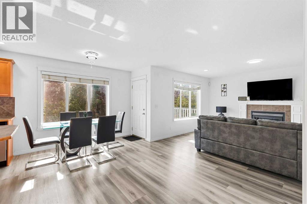Welcome to this beautifully updated 5-bedroom, 3.5-bathroom home offering over 2,400 sq. ft. of total living space in one of Airdrie’s most prestigious and peaceful cul-de-sacs. Perfect for first-time buyers or growing families, this home sits on a massive lot with incredible curb appeal and is just steps from playgrounds, parks, and everyday amenities. Inside, you’ll love the brand-new vinyl flooring, fresh paint throughout, modern pot lights and flush-mount lighting, updated toilet seats, and sleek new stainless steel appliances. The main floor is bright and open with large south-facing windows, a cozy gas fireplace, and plenty of space for family gatherings. Upstairs, you’ll find three generously sized bedrooms including a spacious primary suite with a walk-in closet and private ensuite, plus a versatile bonus room. The fully developed walkout basement features a 2-bedroom illegal suite with its own washroom, full kitchen, separate laundry, appliances, rec room/living area, and a private entrance—perfect for rental income or extended family living. Step outside to your private backyard oasis featuring a two-tiered deck, mature trees, and a stunning waterfall stream feature that creates a serene retreat. With a double attached garage, expansive driveway, and an unbeatable location close to schools, shops, and Nose Creek Park, this property truly has it all. Don’t miss your chance to own this one-of-a-kind property—book your private showing today with your favourite realtor! (id:6769)