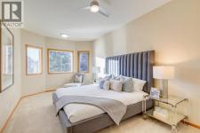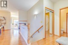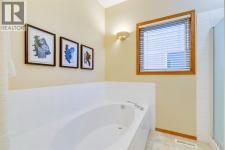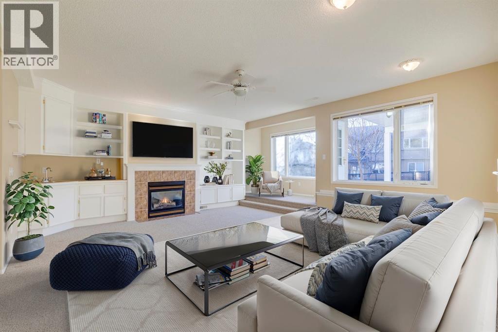 Discover a rare opportunity in an exclusive 18+ boutique complex with this stunning walk-out bungalow, offering over 2,600 SqFt of impeccably developed living space. From the moment you enter, you are greeted by the grandeur of nine-foot ceilings and gleaming hardwood floors that flow throughout the main level. The entrance hall features an oversized closet, leading into a home designed for both elegant entertaining and comfortable living. A huge den, illuminated by an abundance of natural light from a magnificent floor-to-ceiling arched window, presents the perfect setting for a distinguished home office. Host memorable gatherings in the large formal dining space, which shares a sophisticated three-way fireplace with the inviting living room. The kitchen boasts vaulted ceilings and an abundance of white cabinetry, contrasted beautifully with natural oak trim. This clean, consistent aesthetic is complemented by a tiled backsplash and white appliances. An eat-up peninsula island and a bright breakfast nook provide casual dining options, with direct access to a sunny, West facing balcony with gas line for the BBQ for seamless indoor-outdoor enjoyment. The main floor also hosts the expansive master suite, a true retreat featuring double walk-in closets, a separate linen closet, and a full en-suite bathroom complete with a large soaker tub, separate shower, and an oversized vanity offering ample storage. The fully finished walk-out basement extends your living space with a vast recreation area, anchored by a second feature fireplace surrounded by custom built-in cabinetry and a convenient wet bar. This level also includes a large bedroom with a walk-in closet, a full bathroom, and a versatile third bedroom with access to the utility room and substantial storage, providing ample space for guests or hobbies. Step outside to a covered patio and a yard with a paved pathway, offering a sense of privacy. Meticulously maintained by the original owner, this home includes a newe r furnace and water tank, with regular roof shingle maintenance ensuring peace of mind. The monthly HOA fee covers landscaping and snow removal, providing a lock-and-leave lifestyle ideal for those seeking to downsize without compromise. Situated in a prime location, you are just moments from parks, the extensive shopping and dining options in Shawnessy, Costco is a mere 10 mins away, and offers easy access to MacLeod and Stoney Trail. This exceptional property combines luxury, convenience, and low-maintenance living. (id:6769)