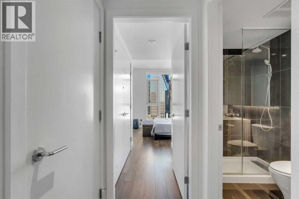 Nestled in the heart of Calgary’s vibrant Beltline, this luxurious corner-unit condo in the sought-after Park Point building offers refined urban living with unbeatable walkability. Surrounded by shops, restaurants, business hubs, transit, schools, and grocery stores, everything downtown has to offer is quite literally at your doorstep. Designed for upscale city living, Park Point delivers an exceptional lifestyle with full-service amenities. Enjoy the convenience of a dedicated concierge to handle packages and daily needs, along with 24/7 security supported by on-site personnel and camera monitoring for complete peace of mind. Guests are welcomed with a private guest suite, while residents benefit from an enormous bike room, a fully equipped fitness centre, yoga studio, sauna, and an impressive residents’ lounge ideal for entertaining. A tranquil Zen garden offers a serene retreat for both you and your pets, and even includes a car wash bay designed for vehicles and pets. Inside, this thoughtfully designed 563 sq ft one-bedroom, one-bathroom residence is flooded with natural light thanks to expansive west- and north-facing windows. The open-concept kitchen, dining, and living areas showcase unobstructed views of Central Memorial Park and the downtown skyline, creating a bright and airy atmosphere throughout the day. The sleek kitchen features granite countertops and integrated appliances, delivering a seamless, modern aesthetic. The private bedroom is well-proportioned, while generous in-unit storage enhances everyday functionality. A contemporary 3-piece bathroom includes a walk-in shower with clean, modern finishes. Additional highlights include air conditioning, underground titled parking, and a separate assigned storage locker, completing this highly desirable package. Whether you’re a professional, investor, or first-time buyer, this Park Point condo offers an unmatched combination of luxury, location, and lifestyle in one of Calgary’s most dynamic downtown co mmunities. (id:6769)