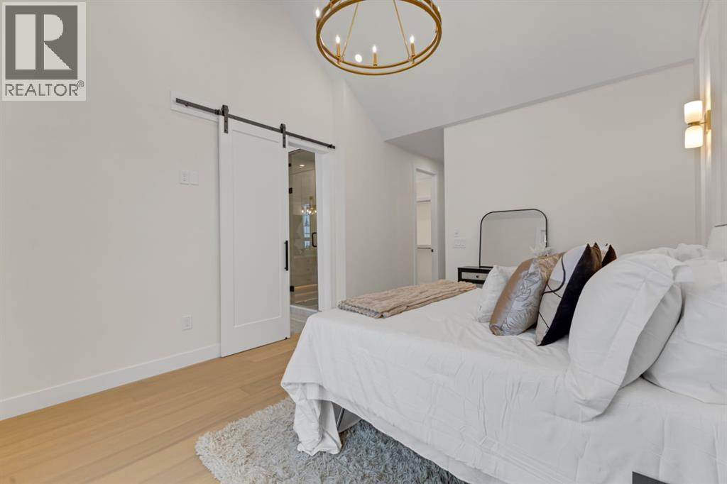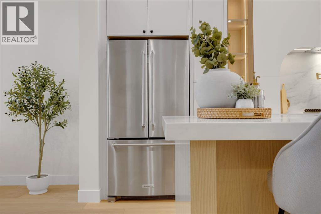 One Unit Remaining! Elegant French Chateau-Style Duplex in Richmond | Over 3,100 Sq Ft | Oversized Garage. Step into timeless sophistication with this beautifully crafted French chateau-inspired duplex, ideally located in the prestigious community of Richmond. Boasting over 3,100 sq ft of luxurious living space, this residence seamlessly blends classic charm with modern comfort. Engineered wood flooring flows throughout the main and upper levels, setting the tone for the refined finishes found throughout the home. Upstairs, you'll find three generously sized bedrooms, each complete with walk-in closets and private ensuites.. The stunning 5-piece primary ensuite is a true retreat, offering heated floors, a steam shower, a free-standing tub, a double vanity with a custom tower, and recessed lighting to create a spa-like atmosphere. The main floor is thoughtfully designed for both work and relaxation, featuring a convenient pocket office, a chef-inspired kitchen with a massive 15-foot island and high-end Kitchen Aid appliances, and an inviting living room centered around a cozy gas fireplace. A stylish mudroom with built-in cabinetry leads to the powder room and out to your private backyard through large patio doors. The fully finished basement offers a wet bar, bedroom with a 3 pc bathroom along with a huge rec area. Situated on a rare 135-foot deep lot, the backyard is generously sized—perfect for outdoor entertaining—and complemented by a double oversized garage for added convenience. This is a one-of-a-kind home that perfectly balances elegance, comfort, and versatility in one of Calgary’s most sought-after neighbourhoods. (id:6769)