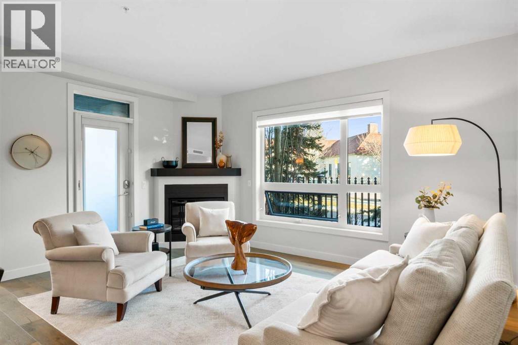 Welcome to Unit 105 at 145 Burma Star Road SW in The Armory, an elegant and refined ground-level corner residence in the esteemed Currie Barracks community. Spanning 1,161 square feet of thoughtfully designed living space with 9-foot ceilings, this exceptional home features two spacious bedrooms on opposite sides of the condo for added privacy, a private den, and two full bathrooms, achieving an ideal blend of comfort, style, and functionality.Recently painted and with new carpets in the bedrooms, this home is ready for you to move in. As a corner unit, it benefits from more windows than an interior unit, allowing for abundant natural light that enhances the airy atmosphere. The thoughtfully planned interior, accentuated by the generous ceiling height, is warm and inviting, with large windows that showcase the quality finishes throughout. The welcoming living area is anchored by a charming gas fireplace and flows effortlessly onto a private patio equipped with a gas hook-up for your BBQ, creating a perfect setting for outdoor relaxation and refined entertaining.The well-appointed kitchen combines elegance with practicality, offering ample cabinetry and counter space for everyday living and hosting guests. An open dining area conveniently connects the den and kitchen, providing an inviting space for meals and gatherings. The primary bedroom serves as a peaceful retreat, complete with its own ensuite bath, while the second bedroom, situated on the opposite side of the condo, along with the versatile den, provides excellent flexibility for a home office, guest room, or creative space.Convenience is further enhanced by a dedicated laundry room with additional storage, ideal for keeping an organized home. This exceptional property also includes the rare advantage of two titled parking stalls, along with two storage cages conveniently located nearby. The building has central air-conditioning and is pet-friendly, making it an excellent choice for pet owners.Perfect ly situated, the home is just a five-minute walk to Mount Royal University and only a twenty-minute walk to the boutiques, cafés, and renowned restaurants of vibrant Marda Loop. Enjoy a meal across the street at The Inn on Officers Garden, or take a five-minute stroll to Wild Rose Brewery for dinner and drinks at Veranda at The Stables. Parks, scenic pathways, and convenient transit are all close by, providing quick and easy access to downtown Calgary.Combining timeless elegance, exceptional space, and a desirable location, this residence offers a truly elevated lifestyle in one of Calgary’s most sought-after neighbourhoods. (id:6769)