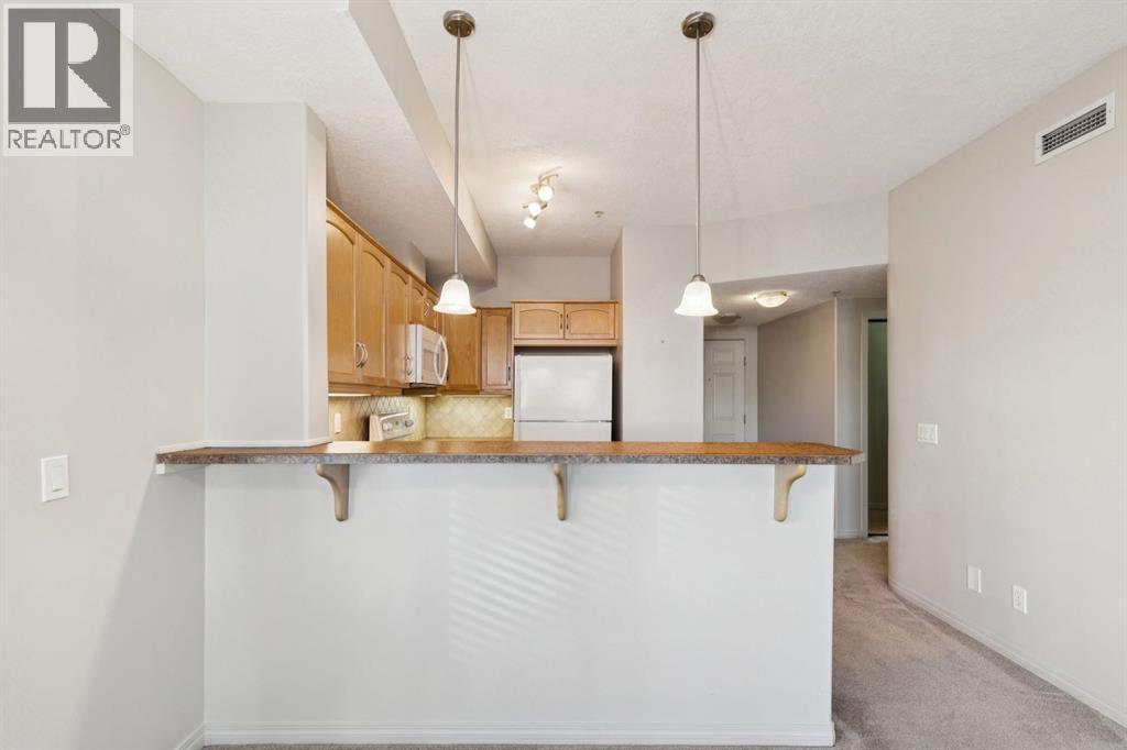 Welcome to the Aviemore of McKenzie Towne, a highly sought-after 55+ condo residence known for its welcoming atmosphere, exceptional lifestyle amenities, and unbeatable location in the heart of this lively, character-rich community. This ground-floor end unit offers a rare combination of privacy and convenience with only one shared wall, air conditioning, efficient heating, a cozy fireplace, and a personal patio that allows for easy outdoor access and relaxed everyday living. From the moment you enter, you’ll appreciate the wide-open layout enhanced by high ceilings and elegant arched doorways that create a bright, spacious feel throughout the home.The kitchen is thoughtfully positioned at the front of the unit and features a practical breakfast peninsula, full-size appliances, a garburator, and ample cabinetry—everything you need within easy reach for both daily meals and entertaining. It flows naturally into the generous living room, where the fireplace adds warmth and comfort and the patio access extends the living space outdoors. Down the hall, the layout continues with a full bathroom and two comfortable bedrooms, including a standout primary suite complete with a walk-in closet and private ensuite for added convenience. An in-suite laundry room with washer and dryer, along with additional storage space, adds everyday functionality and keeps everything neatly organized. A titled parking stall adds yet more value, providing a secure underground space with additional storage at the end of the stall. Life at the Aviemore is elevated by an impressive range of amenities designed to keep residents active, social, and engaged, including party rooms, a theatre, a fully equipped fitness centre with sauna, woodshop and hobby rooms, library, pool and billiards area, wine-making room, car wash bay, and a beautifully maintained outdoor gazebo. Beyond the building, McKenzie Towne truly shines with its walkable streets, charming High Street shops and cafés, nearby parks and pathways, and a strong sense of community that makes it easy to stay connected and enjoy a relaxed, fulfilling lifestyle right outside your door. (id:6769)