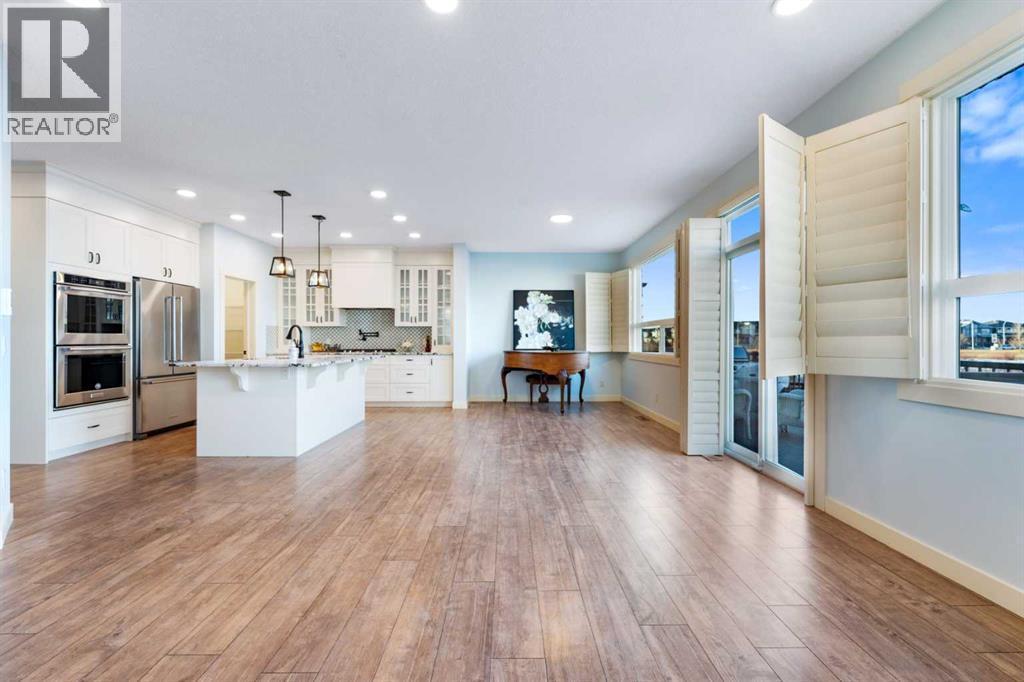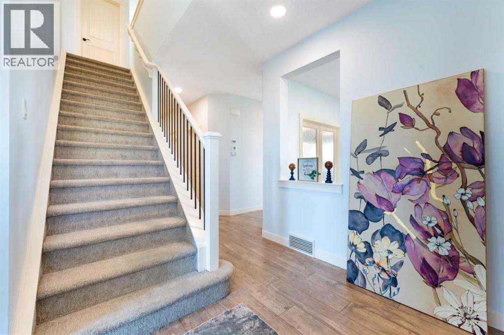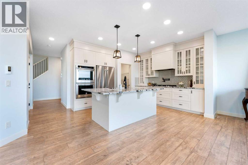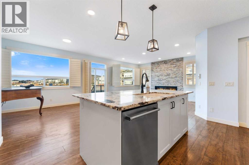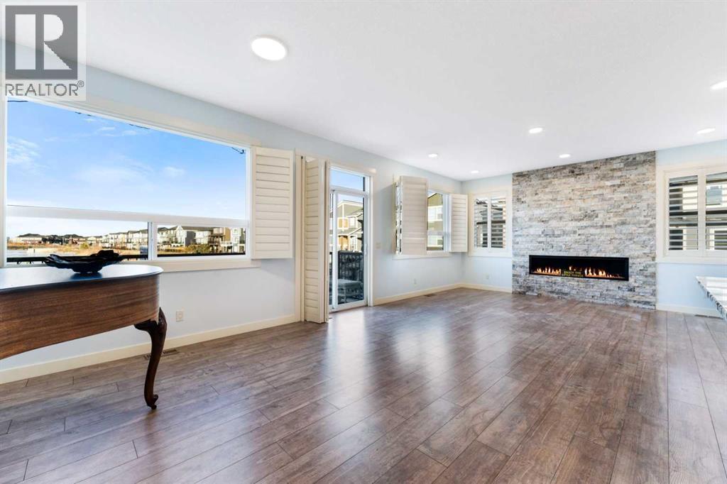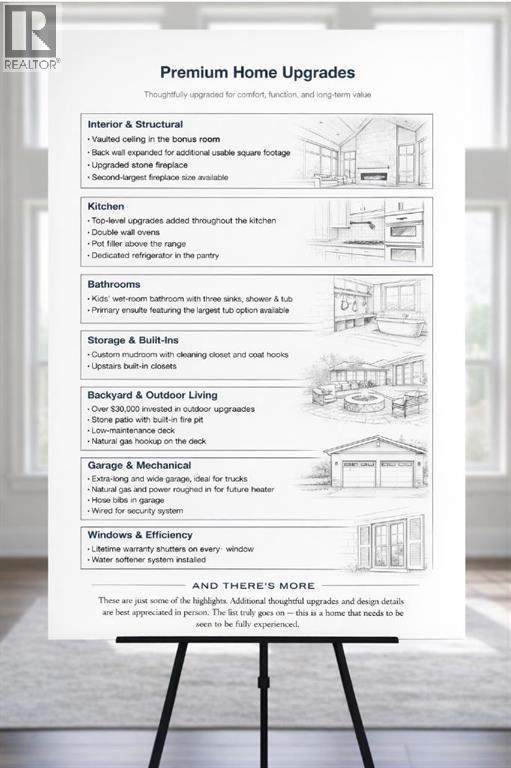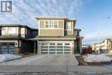 Welcome to this beautifully upgraded corner-lot family home in the heart of Midtown, Airdrie, backing onto the pond and walking paths with park-facing views that offer calming scenery and exceptional privacy. This home provides over 2,500 sq ft of thoughtfully designed living space above grade, plus an unfinished basement ready for future development. Inside, you’ll appreciate 9-foot ceilings throughout, a vaulted upper-level living area, and an expanded back wall that enhances natural light and usable space. The main floor features a functional open-concept layout with a spacious kitchen complete with double wall ovens, a pot filler above the range, a dedicated pantry fridge, and seamless flow into the dining and living areas anchored by an upgraded stone fireplace featuring one of the largest fireplace sizes available. Upstairs offers an ideal family layout with a generous primary retreat and spa-inspired ensuite with the largest tub option, additional well-sized bedrooms, a kids’ wet-room bathroom with three sinks, shower, and tub, convenient upper-level laundry, and excellent built-in storage. The outdoor space has seen over $30,000 invested, including a stone patio with fire pit, low-maintenance deck, and natural gas hookup, all perfectly positioned to enjoy pond views and the surrounding pathways. Practical upgrades include lifetime-warranty shutters on every window, a water softener system, a custom mudroom with cleaning closet and coat hooks, and an extra-long, extra-wide garage ideal for trucks, with natural gas and power roughed in for a heater, hose bibs, and security wiring. Located in the vibrant Midtown community, this home is steps from walking paths, parks, and green spaces, close to schools, shopping, restaurants, and everyday amenities, with easy access to major routes, making it a rare opportunity to own a premium, park-front, pond-backing home in one of Airdrie’s most desirable neighborhoods. (id:6769)