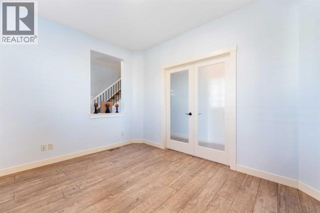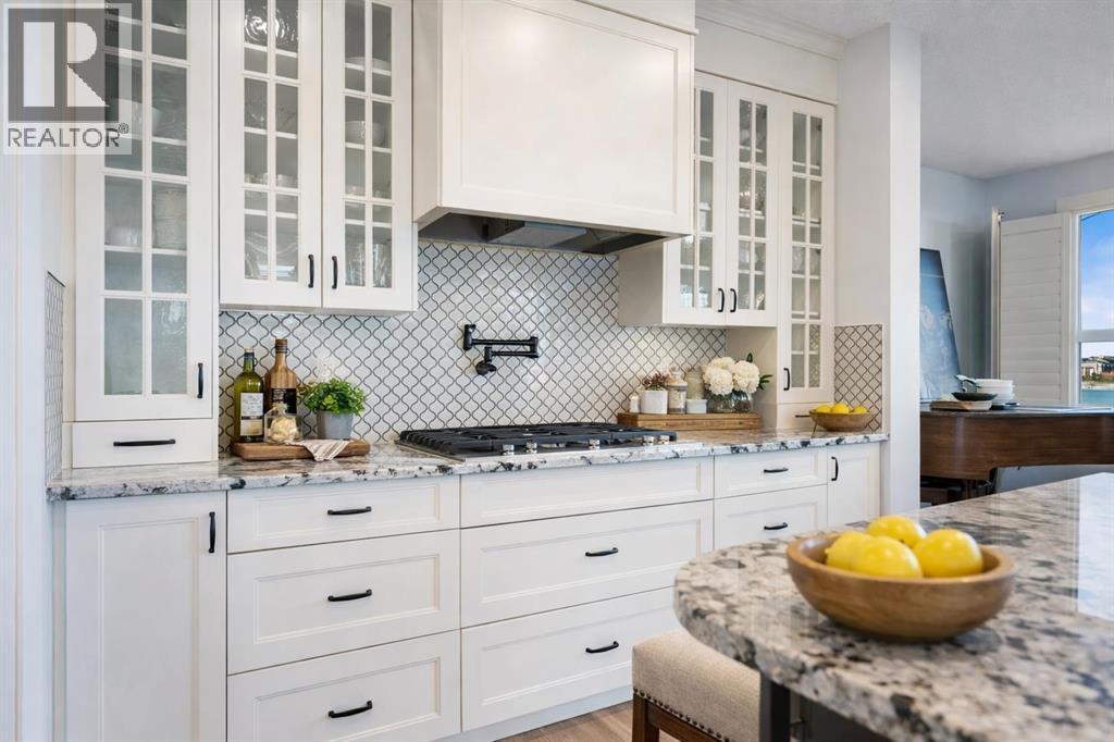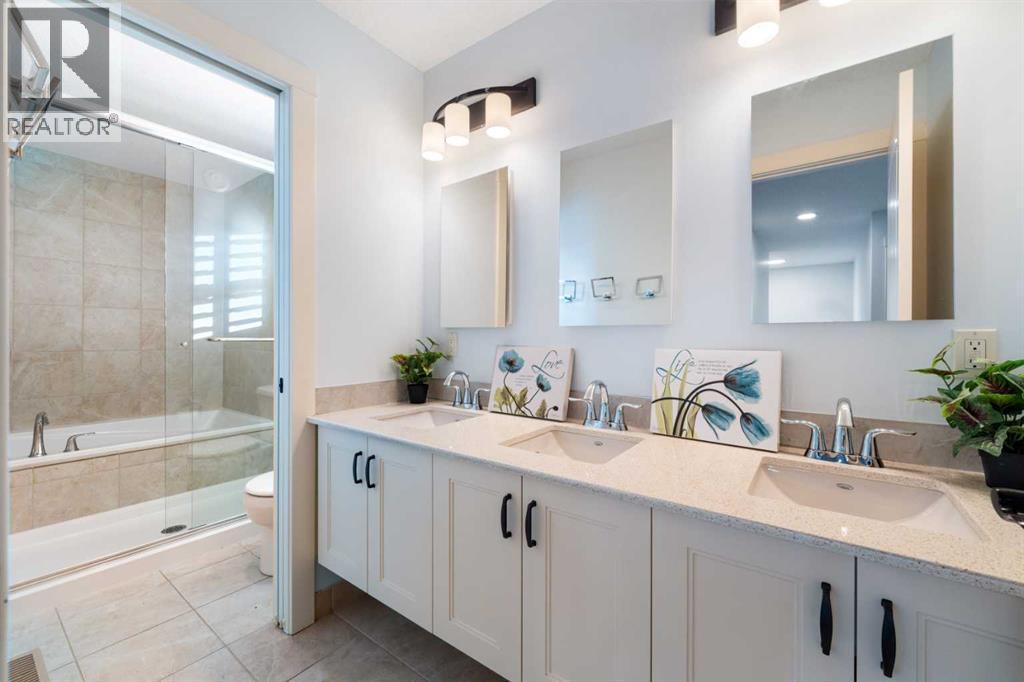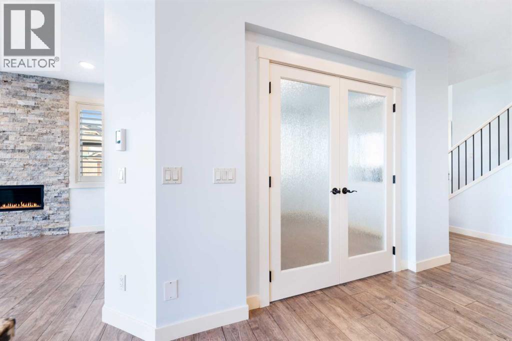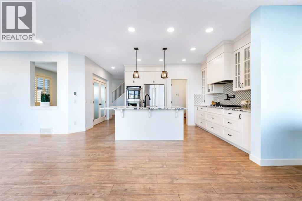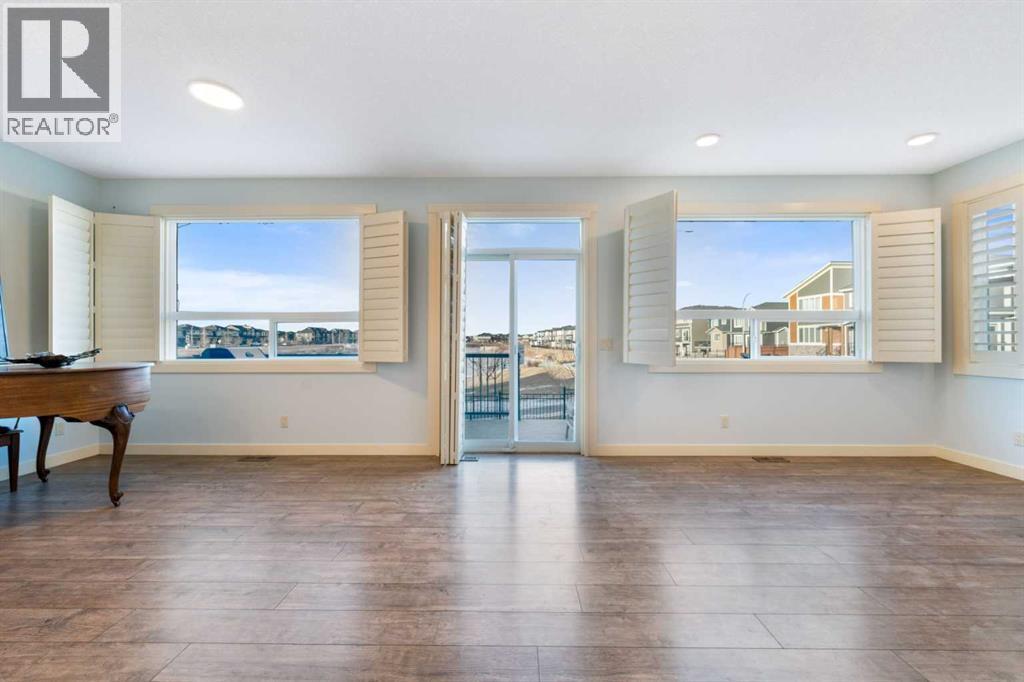 Welcome to this beautifully upgraded corner-lot family home in the heart of Midtown, Airdrie, backing onto the pond and walking paths with park-facing views that offer calming scenery and exceptional privacy. This home provides over 2,500 sq ft of thoughtfully designed living space above grade, plus an unfinished basement ready for future development. Inside, you’ll appreciate 9-foot ceilings throughout, a vaulted upper-level living area, and an expanded back wall that enhances natural light and usable space. The main floor features a functional open-concept layout with a spacious kitchen complete with double wall ovens, a pot filler above the range, a dedicated pantry fridge, and seamless flow into the dining and living areas anchored by an upgraded stone fireplace featuring one of the largest fireplace sizes available. Upstairs offers an ideal family layout with a generous primary retreat and spa-inspired ensuite with the largest tub option, additional well-sized bedrooms, a kids’ wet-room bathroom with three sinks, shower, and tub, convenient upper-level laundry, and excellent built-in storage. The outdoor space has seen over $30,000 invested, including a stone patio with fire pit, low-maintenance deck, and natural gas hookup, all perfectly positioned to enjoy pond views and the surrounding pathways. Practical upgrades include lifetime-warranty shutters on every window, a water softener system, a custom mudroom with cleaning closet and coat hooks, and an extra-long, extra-wide garage ideal for trucks, with natural gas and power roughed in for a heater, hose bibs, and security wiring. Located in the vibrant Midtown community, this home is steps from walking paths, parks, and green spaces, close to schools, shopping, restaurants, and everyday amenities, with easy access to major routes, making it a rare opportunity to own a premium, park-front, pond-backing home in one of Airdrie’s most desirable neighborhoods. (id:6769)