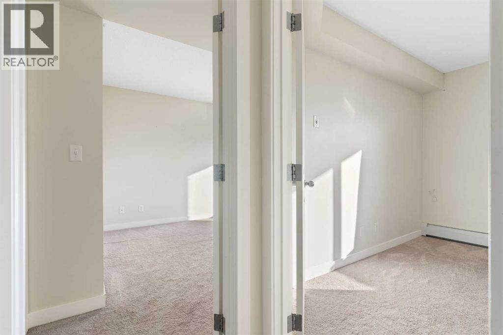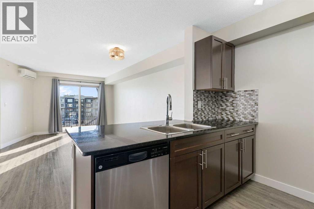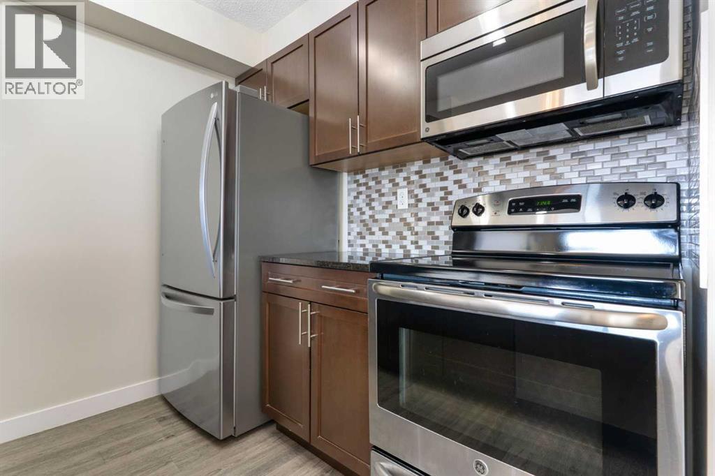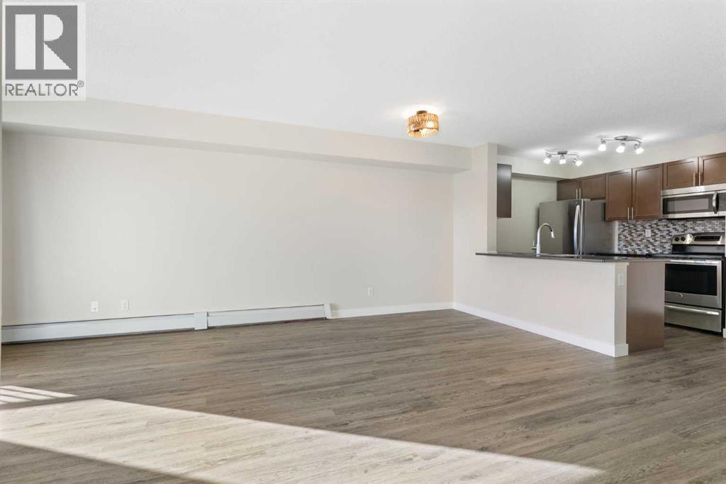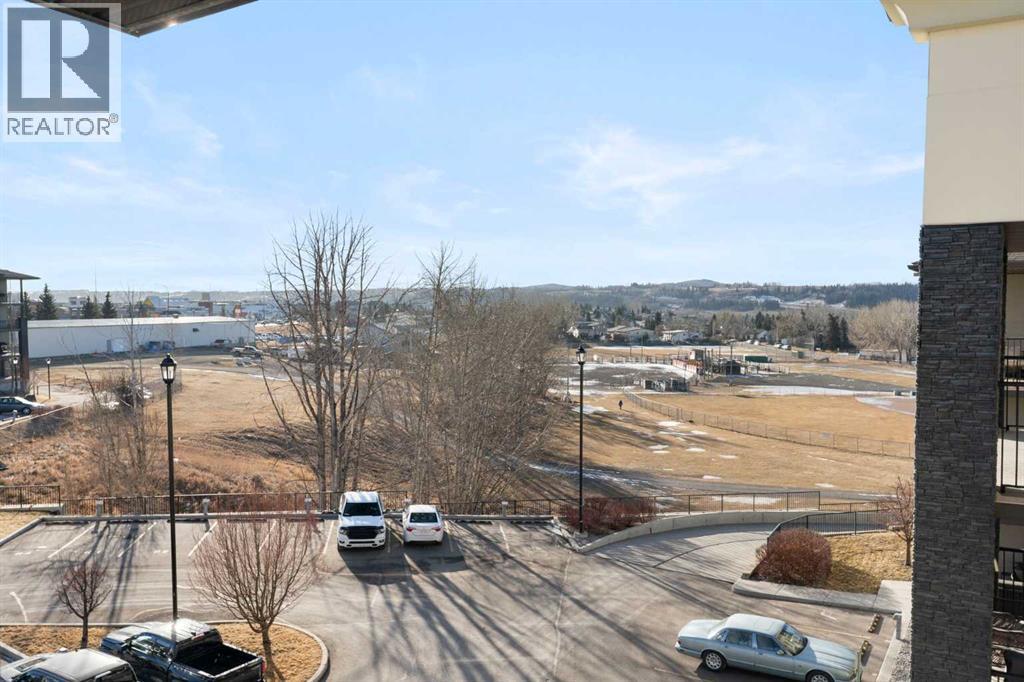 Top Floor | 2 Beds | 2 Baths | Air Conditioned | U/G Storage | 2 Surface Parking Stalls | Pets ok | Experience top-floor living with amazing panoramic views in this beautiful, air-conditioned unit at Glenbow Landing. This meticulously maintained home features a fabulous open layout enhanced by durable vinyl plank flooring. The chef-inspired kitchen offers granite countertops, a breakfast bar, stainless steel appliances, and abundant prep space. It flows seamlessly into a dining area large enough for a substantial table and a bright, inviting living room. Step through the sliding glass doors to your private balcony to take in the scenery. The primary retreat easily accommodates a king-size set and boasts a 4-piece ensuite with granite finishes. A generously sized second bedroom and another full 4-piece bathroom (also with granite) make this unit perfect for guests or a home office. For added convenience, the dedicated laundry room offers significant in-suite storage. Value-added bonuses: Two side-by-side parking stalls (with plug-ins). A massive titled storage room in the underground garage. Pet-friendly (1 dog under 15kg or 2 cats, subject to approval). Book your showing today to see why Living in Cochrane is Loving where you Live." (id:6769)
