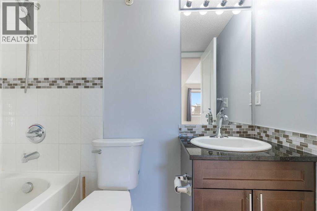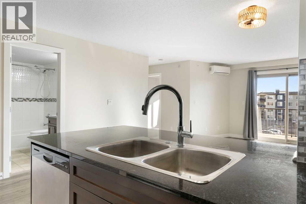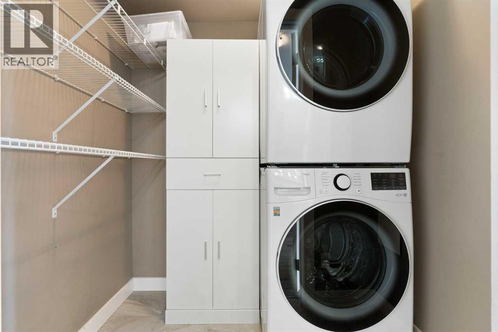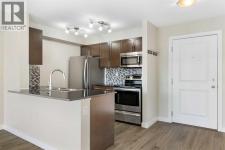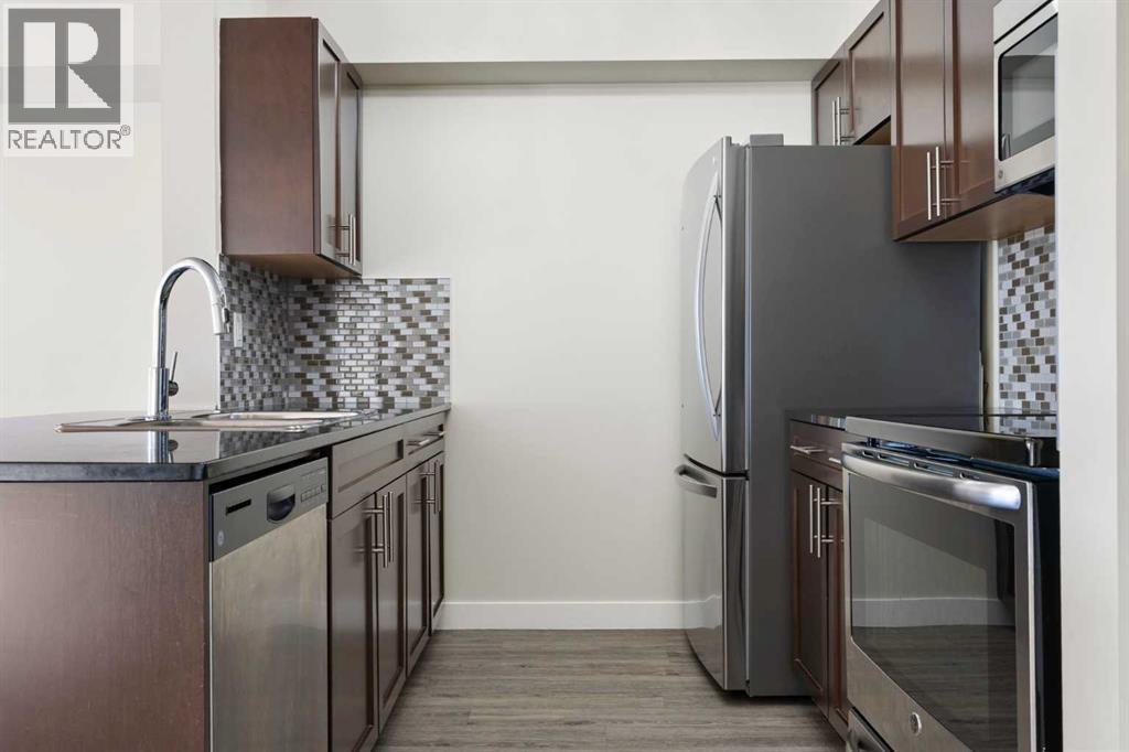 Top Floor | 2 Beds | 2 Baths | Air Conditioned | U/G Storage | 2 Surface Parking Stalls | Pets ok | Experience top-floor living with amazing panoramic views in this beautiful, air-conditioned unit at Glenbow Landing. This meticulously maintained home features a fabulous open layout enhanced by durable vinyl plank flooring. The chef-inspired kitchen offers granite countertops, a breakfast bar, stainless steel appliances, and abundant prep space. It flows seamlessly into a dining area large enough for a substantial table and a bright, inviting living room. Step through the sliding glass doors to your private balcony to take in the scenery. The primary retreat easily accommodates a king-size set and boasts a 4-piece ensuite with granite finishes. A generously sized second bedroom and another full 4-piece bathroom (also with granite) make this unit perfect for guests or a home office. For added convenience, the dedicated laundry room offers significant in-suite storage. Value-added bonuses: Two side-by-side parking stalls (with plug-ins). A massive titled storage room in the underground garage. Pet-friendly (1 dog under 15kg or 2 cats, subject to approval). Book your showing today to see why Living in Cochrane is Loving where you Live." (id:6769)