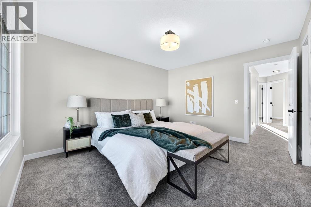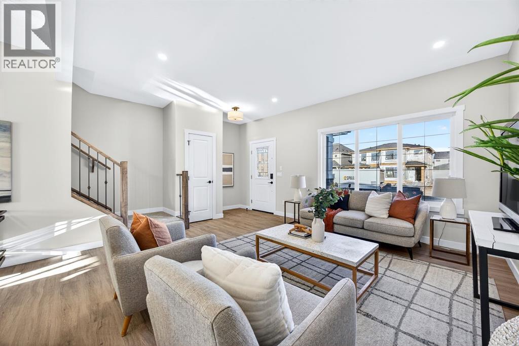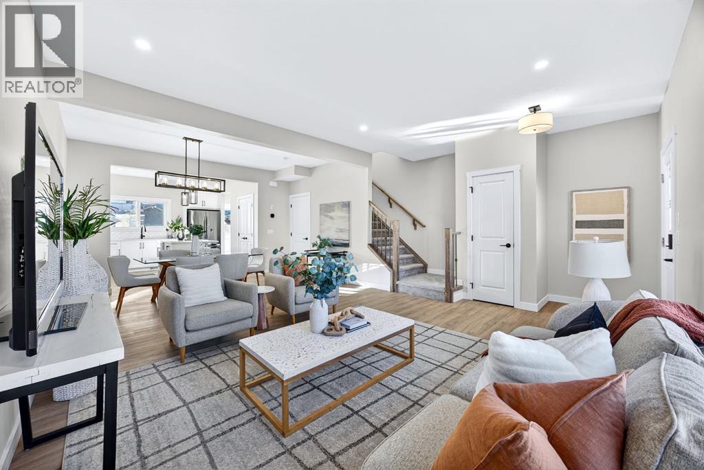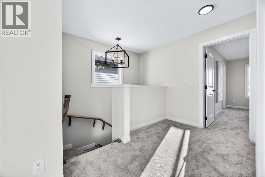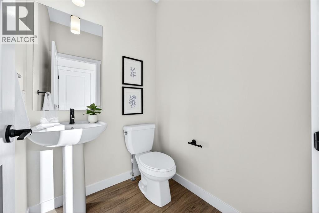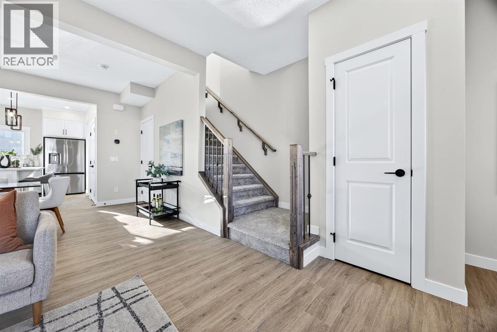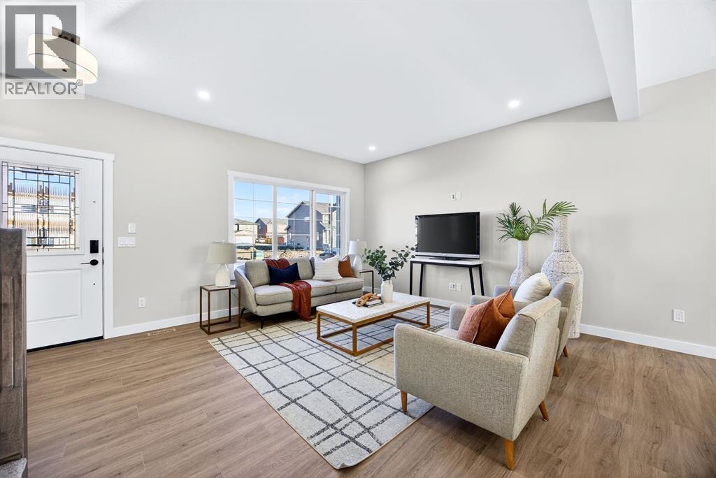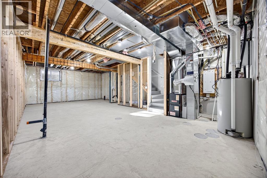 Welcome to this stunning, brand-new Genesis Builders duplex. The "Oscar" offers modern design, functional living, and exceptional future potential with basement suite rough-ins, all complemented by a warm, inviting colour palette that creates a welcoming atmosphere throughout the home. Featuring 3 bedrooms and 2.5 bathrooms, this home is thoughtfully crafted and offers over 1400 sq ft. The main floor showcases a bright, sun-filled floorplan with 9' ceilings and a seamless open-concept layout, connecting the spacious living room, central dining area, and stylish kitchen. The kitchen is beautifully appointed with quartz countertops, two-toned cabinetry, a large central island, and a sleek stainless steel appliance package, complete with a gas line to the range. A convenient powder room completes the main level. Upstairs, the primary suite is a private retreat featuring a generous walk-in closet and a spa-inspired ensuite with his-and-hers sinks and an oversized shower. Two additional well-sized bedrooms, a full bathroom, and convenient upper-floor laundry complete the second level. The unfinished basement offers incredible flexibility with 9' ceilings, a separate SIDE ENTRANCE, and BASEMENT SUITE ROUGH INs, making it ideal for additional living space or future income potential. Outside, the backyard is a blank canvas, ready for your personal touch and offering the opportunity to build your dream garage. Located in the vibrant and family-friendly community of Fireside, this home offers the perfect balance of small-town charm and modern convenience. Fireside is known for its extensive pathway system, parks, playgrounds, and green spaces, ideal for walking, biking, and outdoor enjoyment. Residents love the easy access to schools, shops, restaurants, and everyday amenities, all just minutes away. With quick access to Highway 22 and Highway 1, commuting to Calgary or heading west to the mountains is effortless. *Taxes have not been assessed. Photos are representative of th e same model. This property's colour palette is included in the pictures. RMS has been applied to the builder's construction drawings. (id:6769)